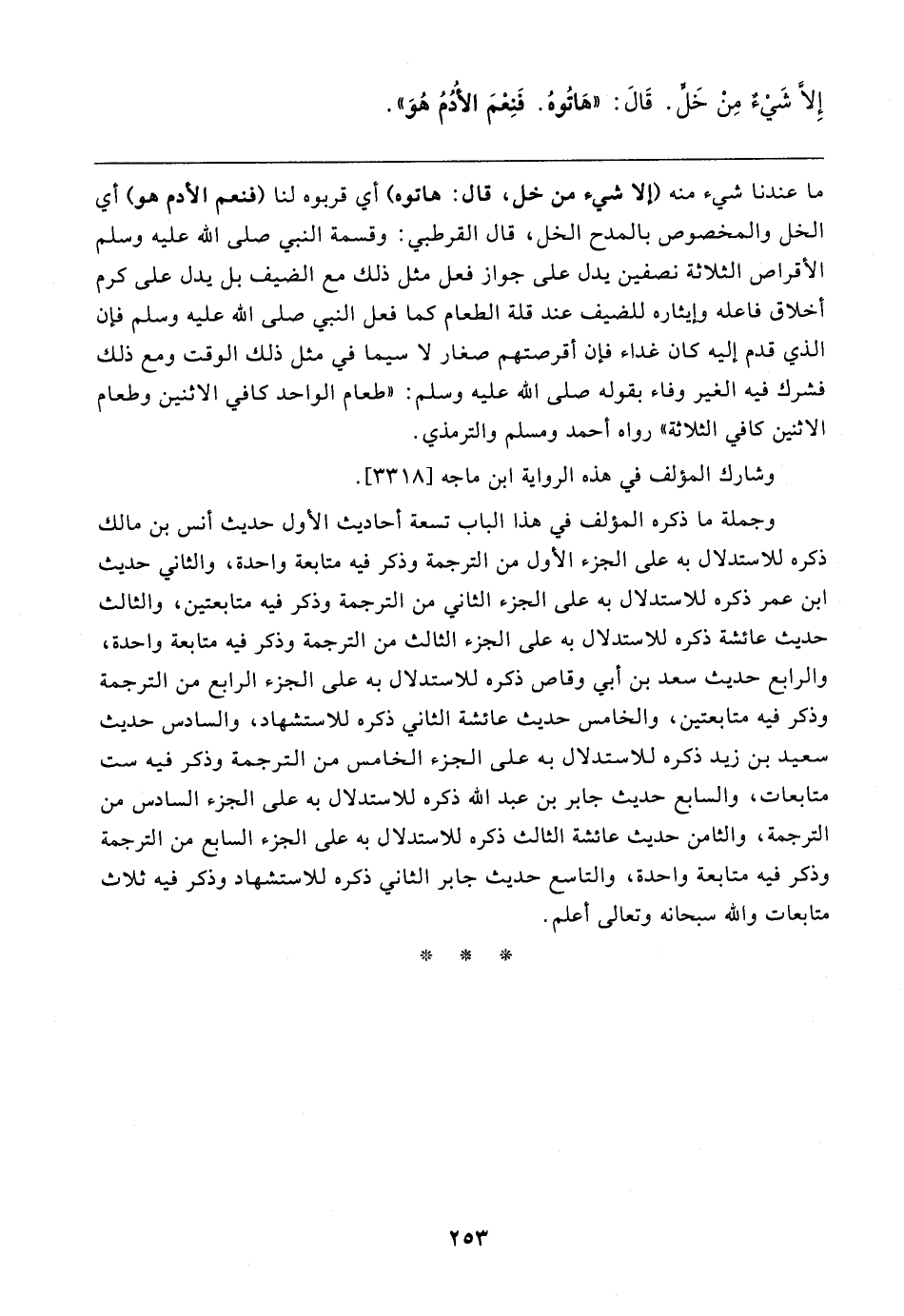 ما عندنا شيء منه (إلا شيء من خل، قال: هاتوه) أي قربوه لنا (فنعم الأدم هو) أي النحل والمخصوص بالمدح النحل، قال القرطبي: وقسمة النبي صلى الله عليه وسلم الأقراص الثلاثة نصفين يدل على جواز فعل مثل ذلك مع الضيف بل يدل على كرم أخلاق فاعله وإيثاره للضيف عند قلة الطعام كما فعل النبي صلى الله عليه وسلم فإن الذي قدم إليه كان غداء فإن أقرصتهم صغار لا سيما في مثل ذلك الوقت ومع ذلك فشرك فيه الغير وفاء بقوله صلى الله عليه وسلم: "طعام الواحد كافي الاثنين وطعام الاثنين كافي الثلاثة" رواه أحمد ومسلم والترمذي.