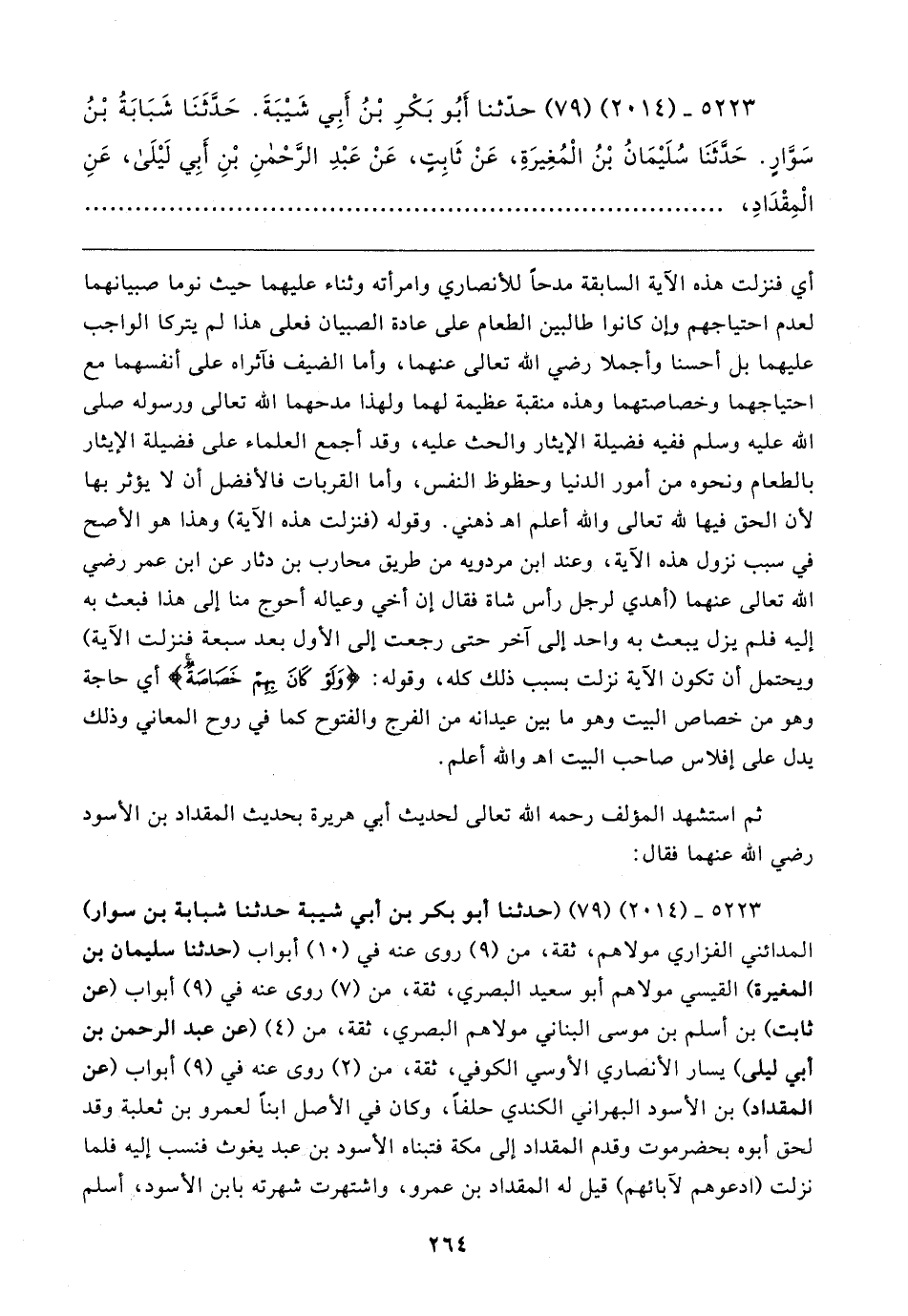 ٥٢٢٣ - (٢٠١٤) (٧٩) حدثنا أَبُو بَكْرِ بْنُ أَبِي شَيبَةَ. حَدَّثَنَا شَبَابَةُ بْنُ سَوَّارٍ. حَدَّثَنَا سُلَيمَانُ بْنُ الْمُغِيرَةِ، عَنْ ثَابِتٍ، عَنْ عَبْدِ الرَّحْمنِ بْنِ أَبِي لَيلَى، عَنِ الْمِقْدَادِ،