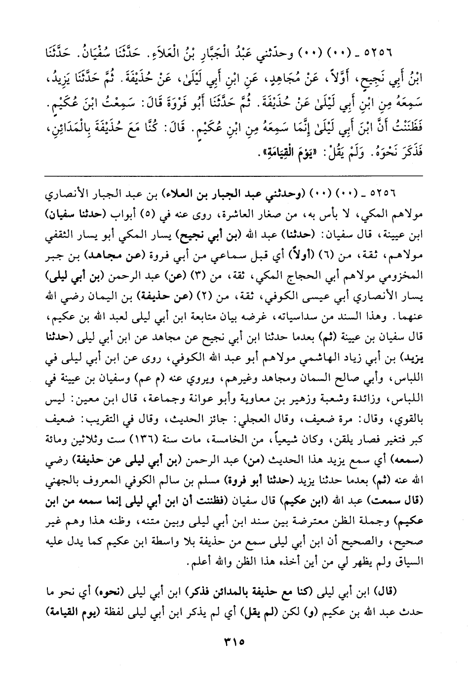 ٥٢٥٦ - (٠٠) (٠٠) وحدّثني عَبْدُ الْجَبَّارِ بْنُ الْعَلاءِ. حَدَّثَنَا سُفْيَانُ. حَدَّثَنَا ابْنُ أَبِي نَجِيحٍ، أَوَّلًا، عَنْ مُجَاهِدٍ، عَنِ ابْنِ أَبِي لَيلَى، عَنْ حُذَيفَةَ. ثُمَّ حَدَّثَنَا يَزِيدُ، سَمِعَهُ مِنِ ابْنِ أَبِي لَيلَى عَنْ حُذَيفَةَ. ثُمَّ حَدَّثَنَا أَبُو فَرْوَةَ قَال: سَمِعْتُ ابْنَ عُكَيمٍ. فَظَنَنْتُ أَنَّ ابْنَ أَبِي لَيلَى إِنَّمَا سَمِعَهُ مِنِ ابْنِ عُكَيمٍ. قَال: كُنَّا مَعَ حُذَيفَةَ بِالْمَدَائِنِ، فَذَكَرَ نَحْوَهُ. وَلَمْ يَقُلْ: "يَوْمَ الْقِيَامَةِ"