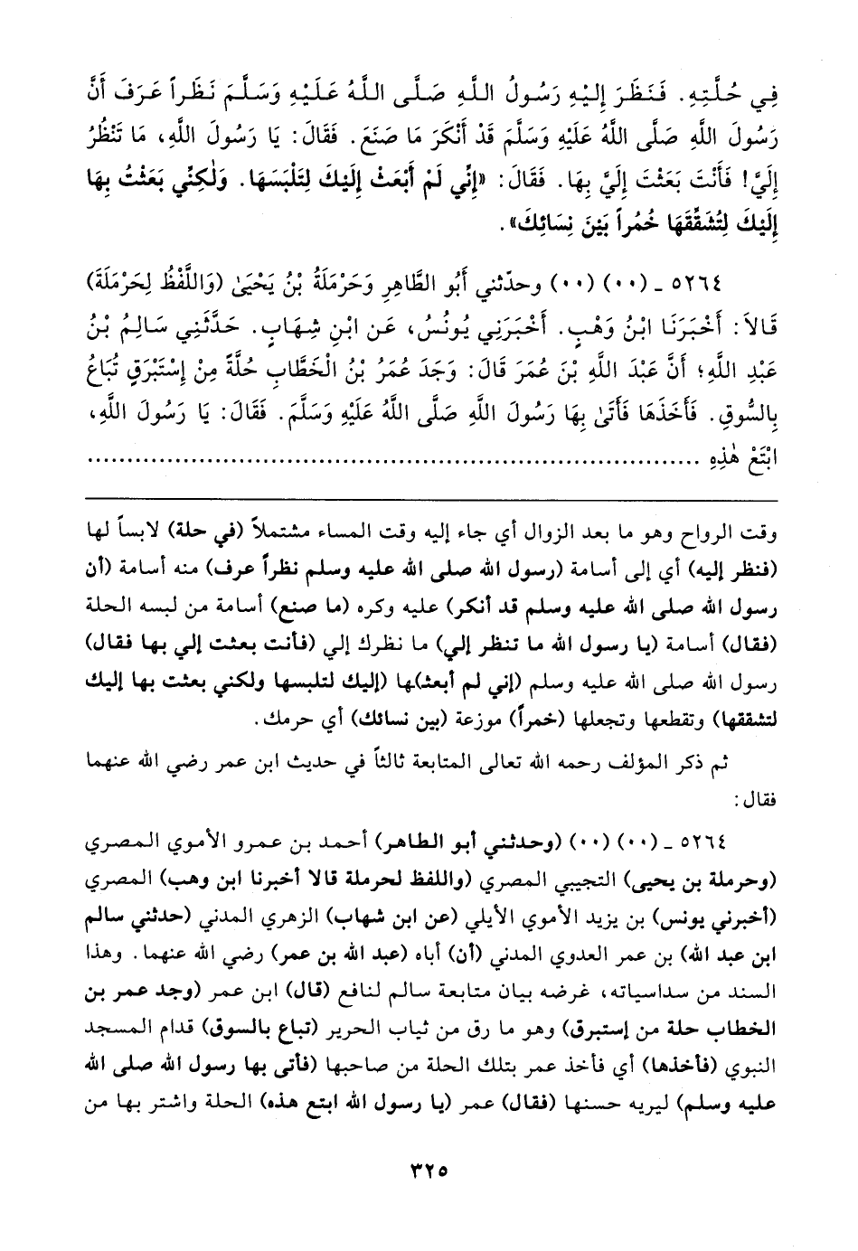 ٥٢٦٤ - (٠٠) (٠٠) وحدّثني أَبُو الطَّاهِرِ وَحَرْمَلَةُ بْنُ يَحْيى (وَاللَّفْظُ لِحَرْمَلَةَ) قَالا: أَخْبَرَنَا ابْنُ وَهْبٍ. أَخْبَرَنِي يُونُسُ، عَن ابْنِ شِهَابٍ. حَدَّثَنِي سَالِمُ بْنُ عَبْدِ اللَّهِ؛ أَنَّ عَبْدَ اللَّهِ بْنَ عُمَرَ قَال: وَجَدَ عُمَرُ بْنُ الْخَطَّابِ حُلَّةَ مِنْ إِسْتَبْرَقٍ تُبَاعُ بِالسُّوقِ. فَأخَذَهَا فَأتَى بِهَا رَسُولَ اللهِ - صلى الله عليه وسلم -. فَقَال: يَا رَسُولَ اللهِ، ابْتَعْ هذِهِ