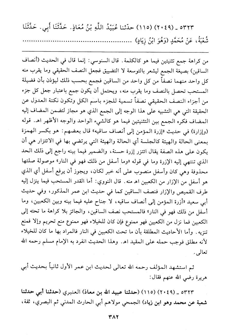 ٥٣٢٣ - (٢٠٤٩) (١١٥) حدَّثنا عُبَيدُ اللهِ بْنُ مُعَاذٍ. حَدَّثَنَا أَبِي. حَدَّثَنَا شُعْبَةُ، عَنْ محَمَّدٍ (وَهوَ ابْن زِيَادٍ)