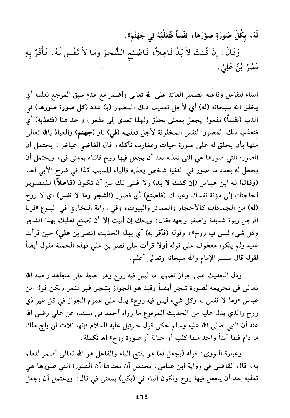 لَهُ، بِكُلِّ صُورَةٍ صَوَّرَهَا، نَفْسًا فَتُعَذِّبُهُ فِي جَهَنَّمَ".