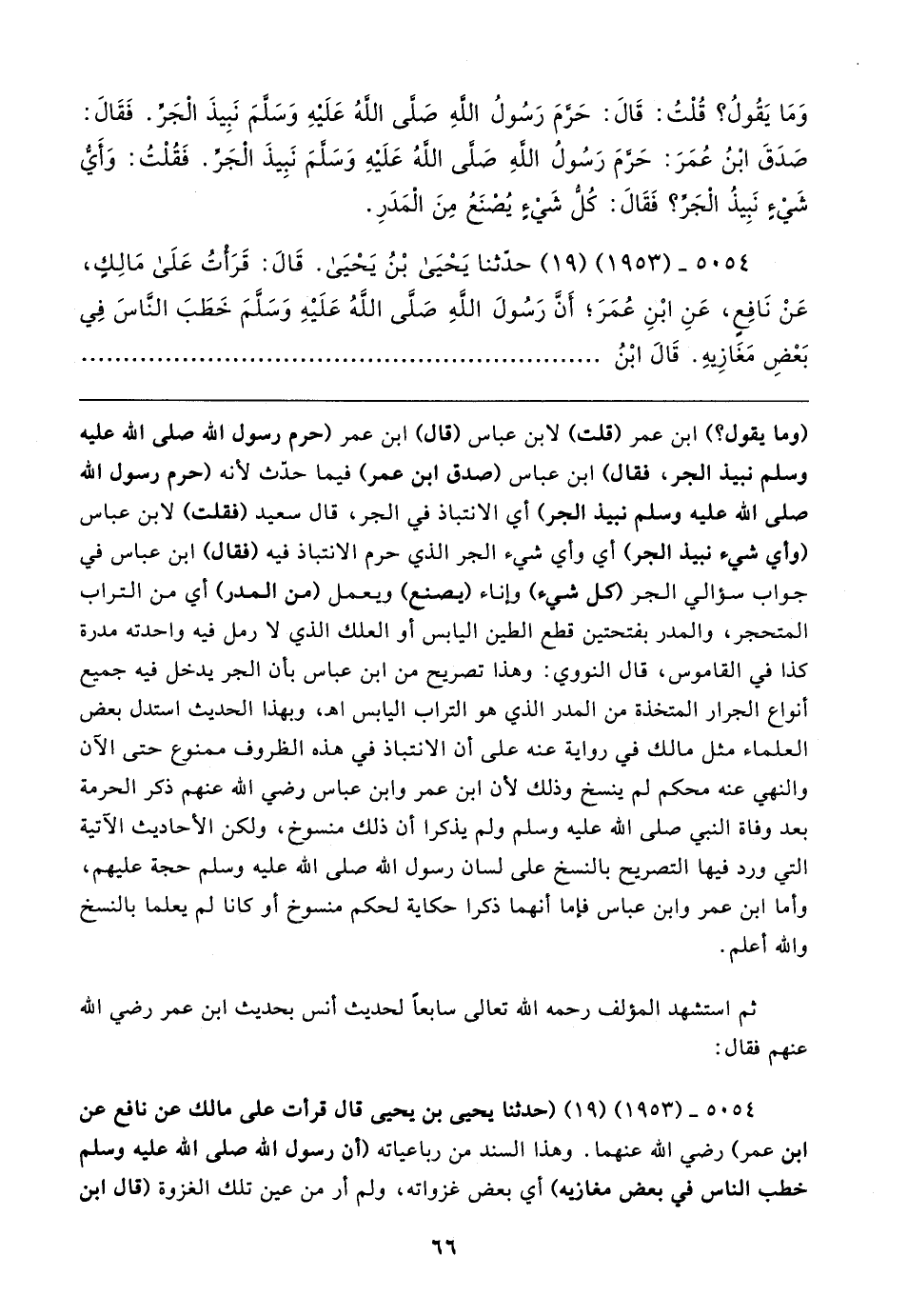 وَمَا يَقُولُ؟ قُلتُ: قَال: حَرَّمَ رَسُولُ اللهِ صلى الله عَلَيهِ وسلَّمَ نَبِيذَ الجَرِّ. فَقَال: صَدَقَ ابْنُ عُمَرَ: حَرَّمَ رَسُولُ اللهِ صلى الله عَلَيهِ وَسلمَ نَبِيذَ الجَرِّ. فَقُلتُ: وَأَيُّ شَيء نَبِيذُ الجَرِّ؟ فَقَال: كُل شَيءٍ يُصْنَعُ مِنَ المَدَرِ.