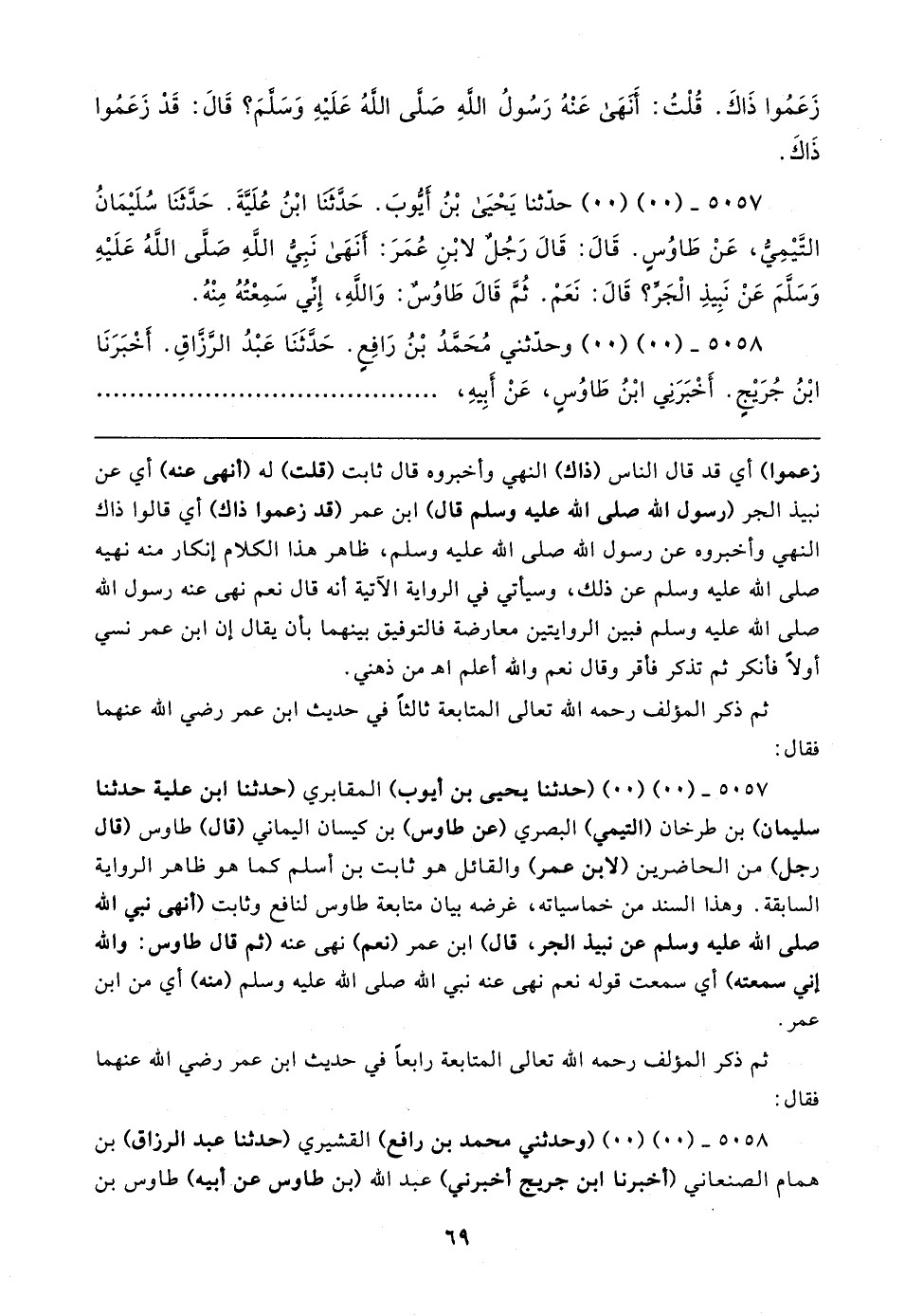 ٥٠٥٨ - (٠٠) (٠٠) (وحدثني محمَّد بن رافع) القشيري (حَدَّثَنَا عبد الرَّزّاق) بن همام الصَّنْعانِيّ (أخبرنا ابن جريج أخبرني) عبد الله (بن طاوس عن أَبيه) طاوس بن