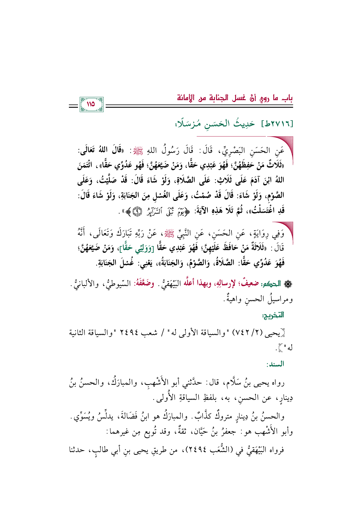 [يحيى (٢/ ٧٤٢) "والسياقة الأولى له" / شعب ٢٤٩٤ "والسياقة الثانية له"].