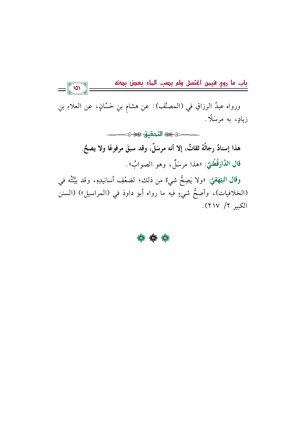 قال الدَّارَقُطْنيُّ: "هذا مرسَلٌ، وهو الصوابُ".