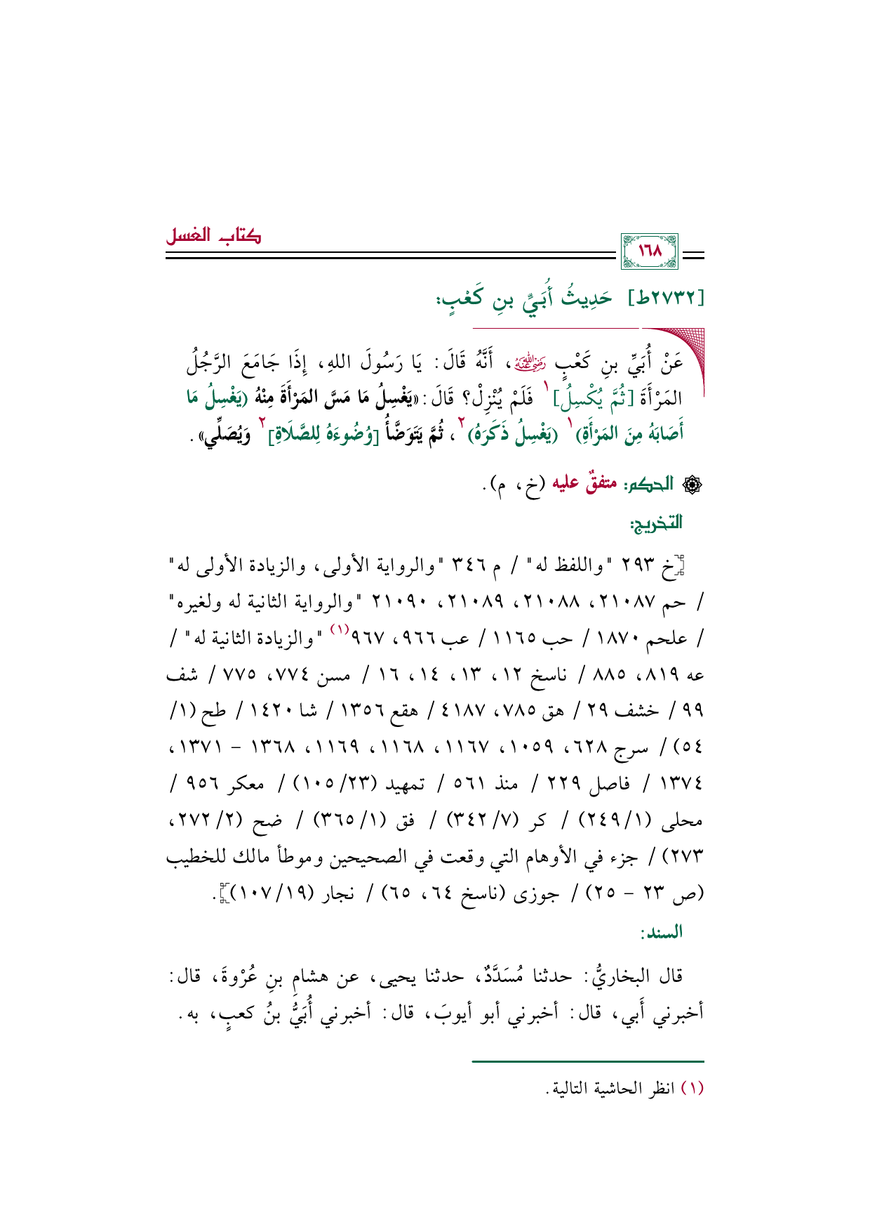 قال البخاريُّ: حدثنا مُسَدَّدٌ، حدثنا يحيى، عن هشامِ بنِ عُرْوةَ، قال: أخبرني أَبي، قال: أخبرني أبو أيوبَ، قال: أخبرني أُبَيُّ بنُ كعبٍ، به.