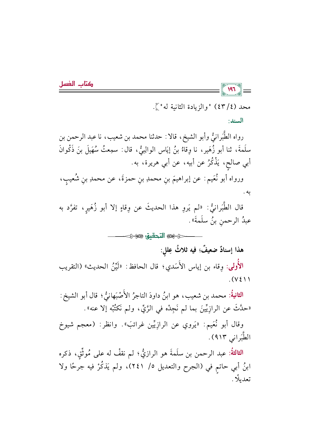رواه الطَّبَرانيُّ وأبو الشيخ، قالا: حدثنا محمد بن شعيب، نا عبد الرحمن بن سلَمةَ، ثنا أبو زُهَير، نا وِقاءُ بنُ إيَاس الوالِبيُّ، قال: سمِعتُ سُهَيلَ بنَ ذَكْوانَ أبي صالحٍ، يَذْكُرُ عن أبيه، عن أبي هريرة، به.