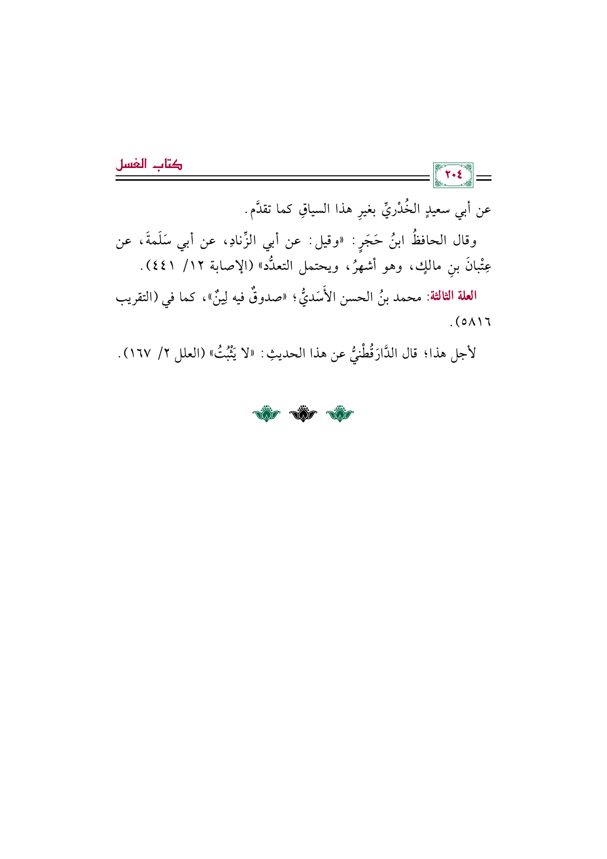 وقال الحافظُ ابنُ حَجَرٍ: "وقيل: عن أبي الزِّنادِ، عن أبي سَلَمةَ، عن عِتْبانَ بنِ مالكٍ، وهو أشهرُ، ويحتمل التعدُّد" (الإصابة ١٢/ ٤٤١).