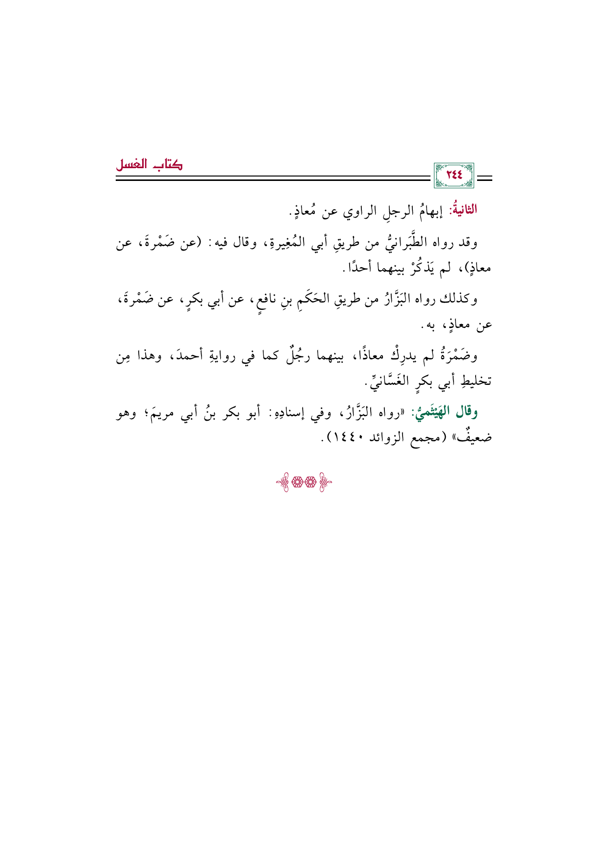الثانيةُ: إبهامُ الرجلِ الراوي عن مُعاذٍ.