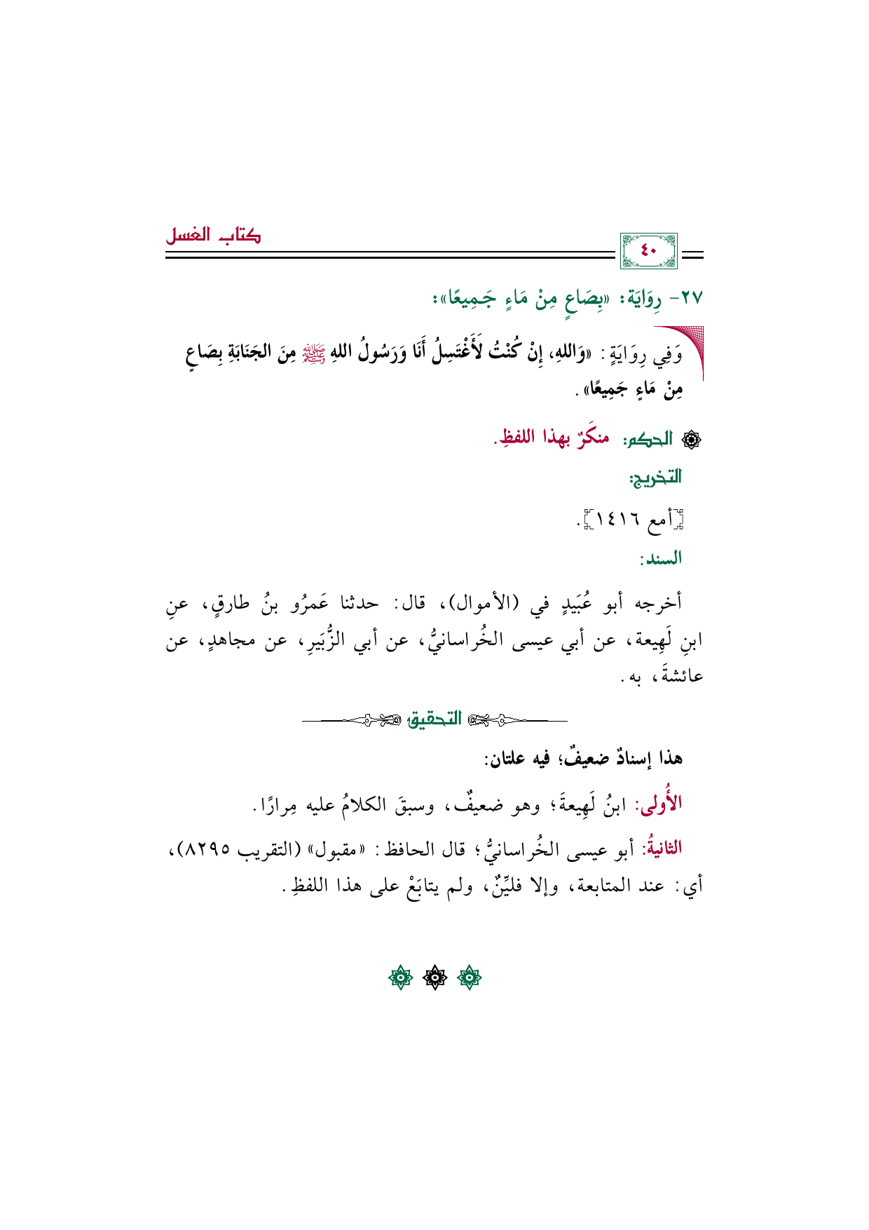 رِوَايَة: بِصَاعٍ مِنْ مَاءٍ جَمِيعًا: