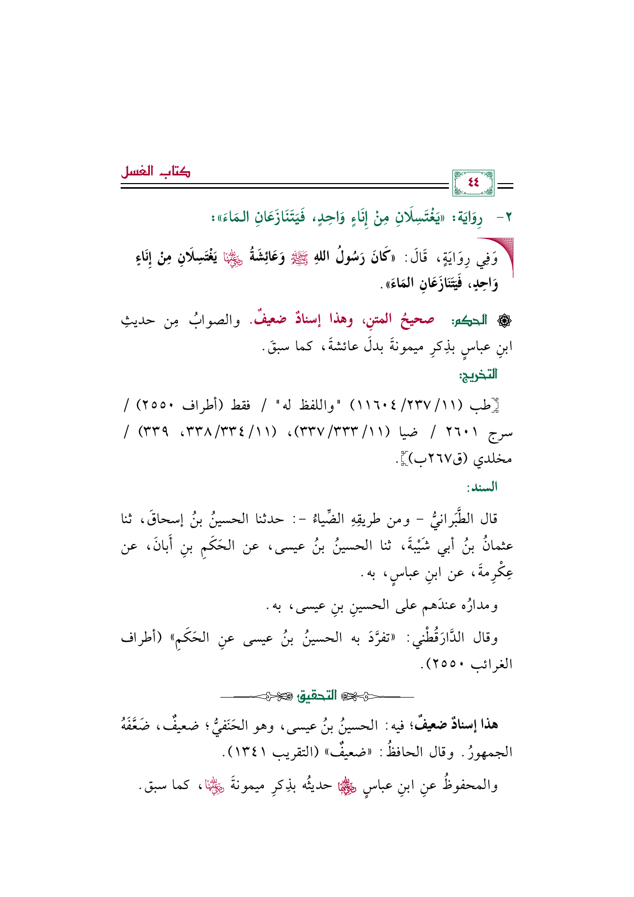 [الحكم]: صحيحُ المتنِ، وهذا إسنادٌ ضعيفٌ. والصوابُ مِن حديثِ ابنِ عباسٍ بذِكرِ ميمونةَ بدلَ عائشةَ، كما سبقَ.