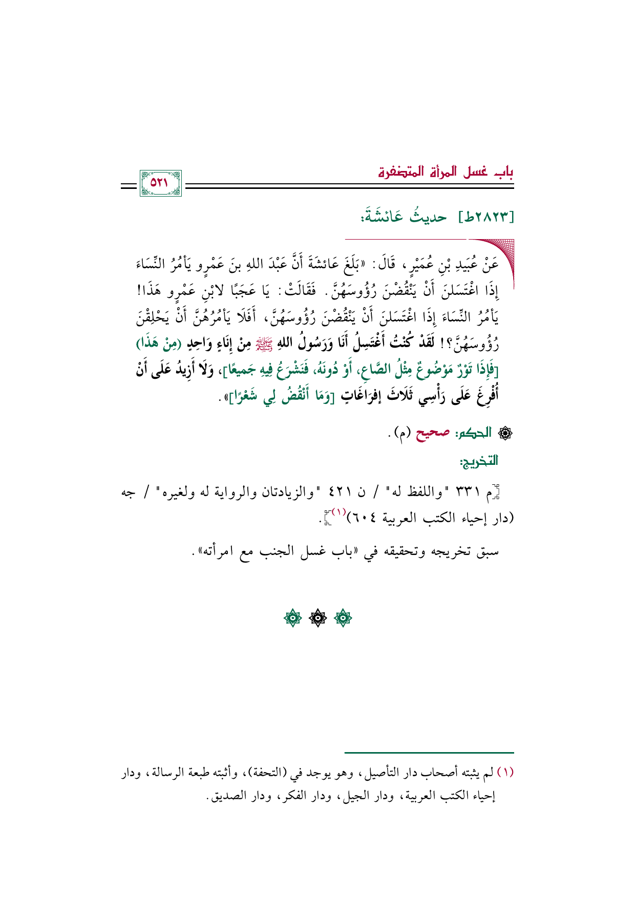 (¬١) لم يثبته أصحاب دار التأصيل، وهو يوجد في (التحفة)، وأثبته طبعة الرسالة، ودار إحياء الكتب العربية، ودار الجيل، ودار الفكر، ودار الصديق.