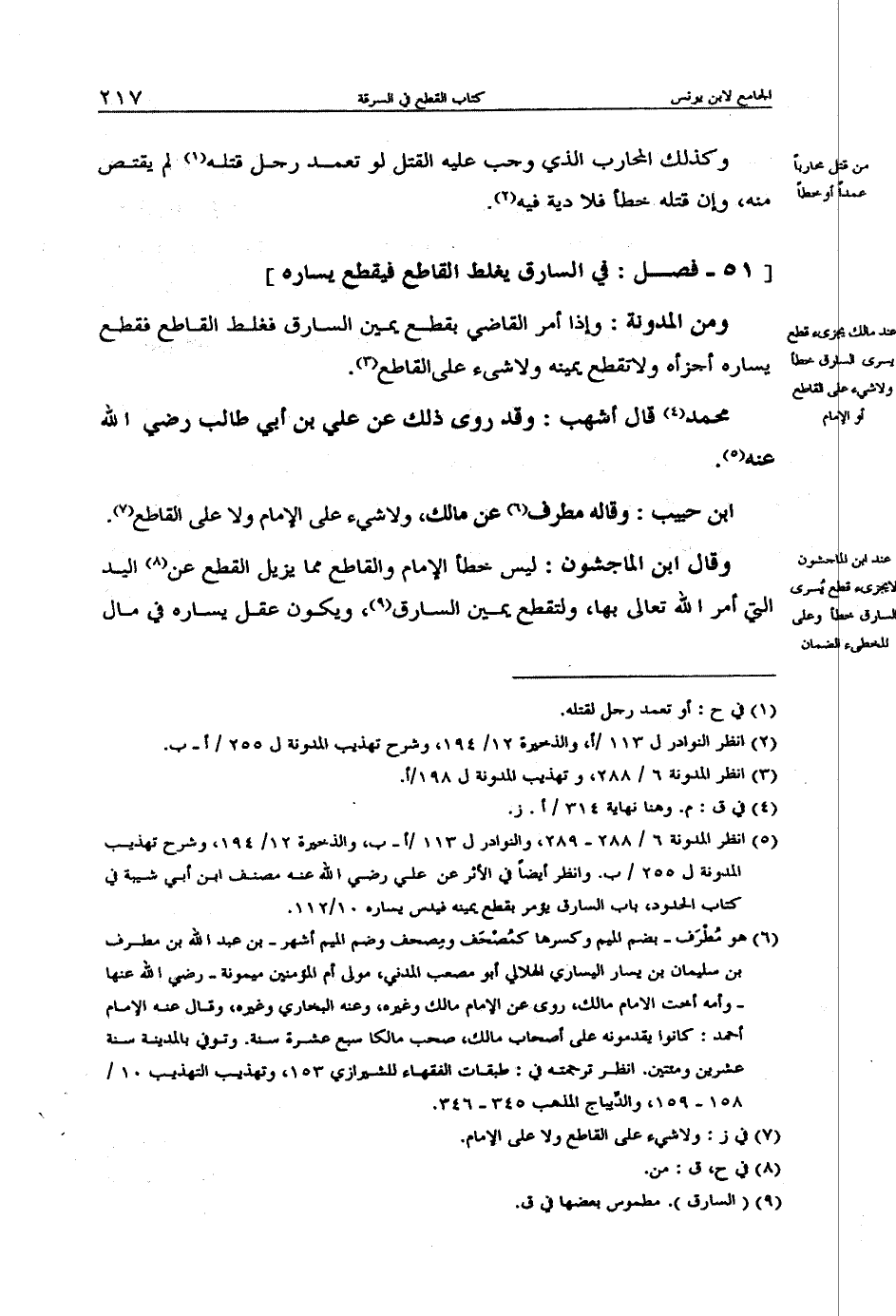 وقال ابن الماجشون: ليس خطأ الإمام والقاطع مما يزيل القطع عن اليد التي أمر الله تعالى بها, ولتقطع يمين السارق, ويكون عقل يساره في مال