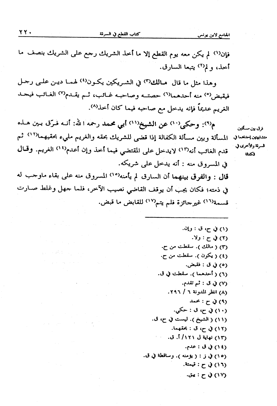 م: وحكى عن الشيخ أبي محمد رحمه الله: أنه فرّق بين هذه المسألة وبين مسألة الكفالة إذا قضى للشريك بحقه والغريم مليء بحقيهما ثم قدم الغائب أنه لا يدخل على المقتضي فيما أخذ وإن أعدم الغريم. وقال في المسروق منه: أنه يدخل على شريكه.