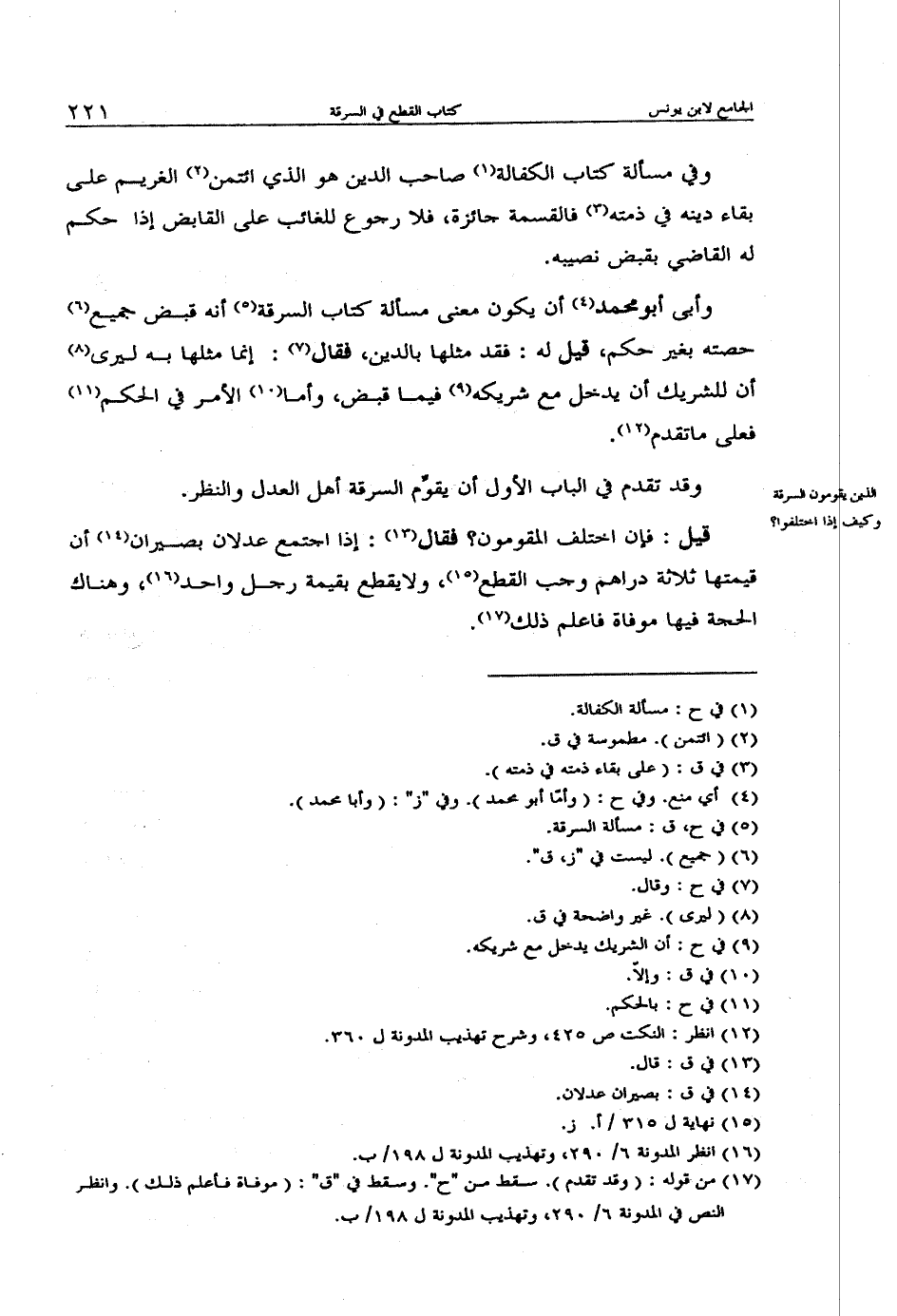 وأبى أبو محمد أن يكون معنى مسألة كتاب السرقة أنه قبض جميع حصته بغير حكم، قيل له: فقد مثلها بالدين، فقال: إنما مثلها به ليرى أن للشريك أن يدخل مع شريكه فيما قبض، وأما الأمر في الحكم فعلى ما تقدم.