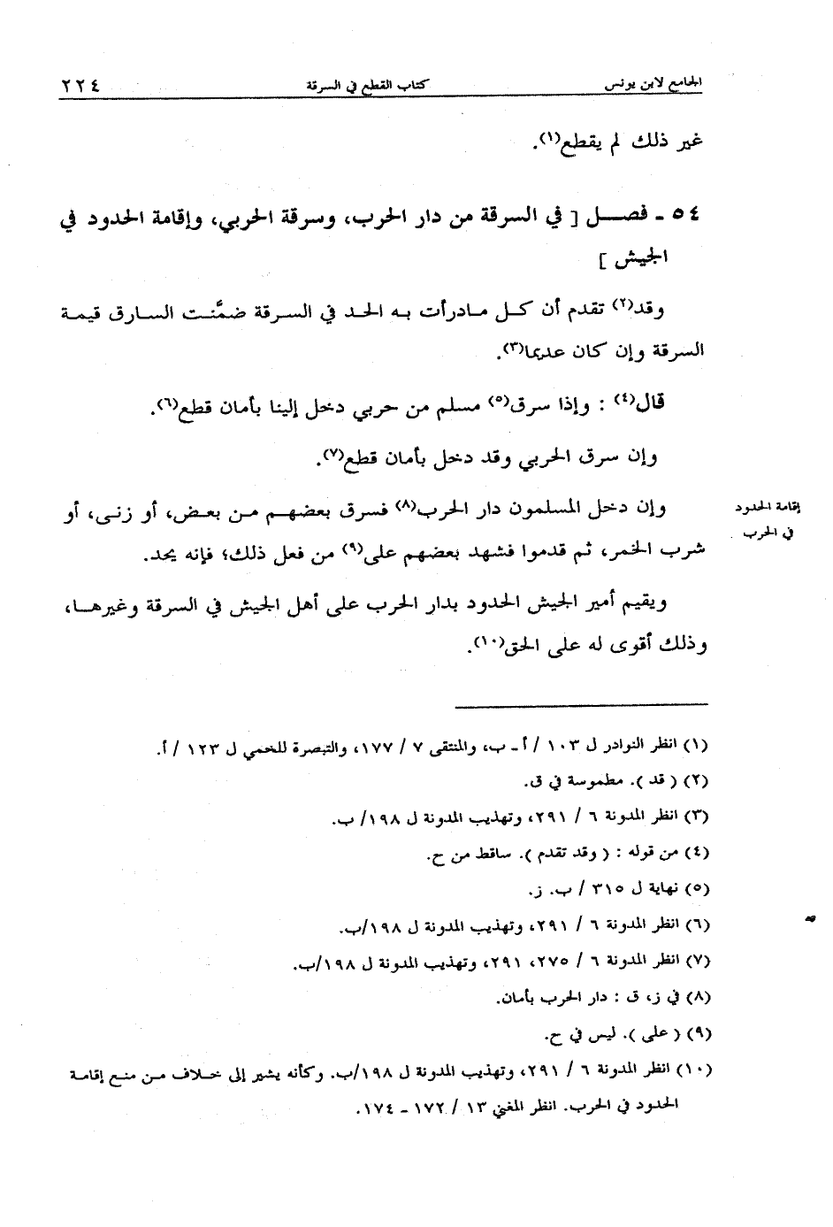 54 - فصل [في السرقة من دار الحرب، وسرقة الحربي، وإقامة الحدود في الجيش]