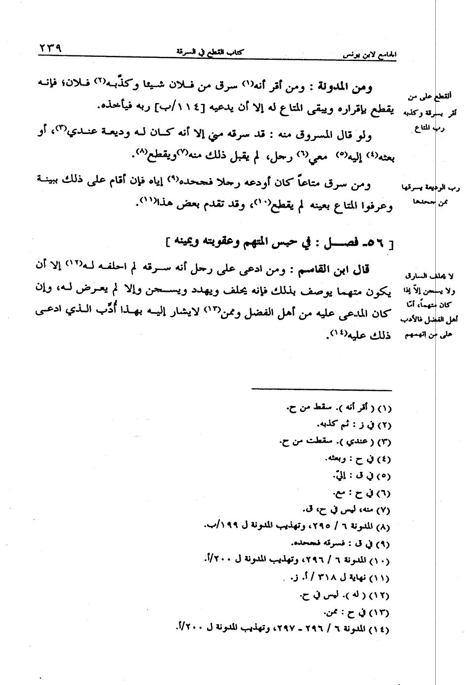 قال ابن القاسم: ومن ادعى على رجل أنه سرقه لم أحلفه له إلا أن يكون متهماً يوصف بذلك فإنه يحلف ويهدد ويسجن وإلا لم يعرض له، وإن كان المدعى عليه من أهل الفضل وممن لا يشار إليه بهذا أدب الذي ادعى ذلك عليه.