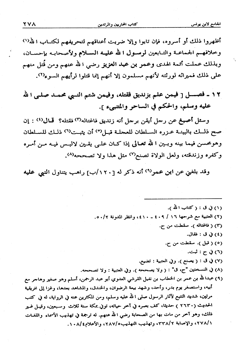 12 - فصل [فيمن علم بزنديق فقتله، وفيمن شتم النبي صلى الله عليه وسلم، والحكم في الساحر والمتنبئ].