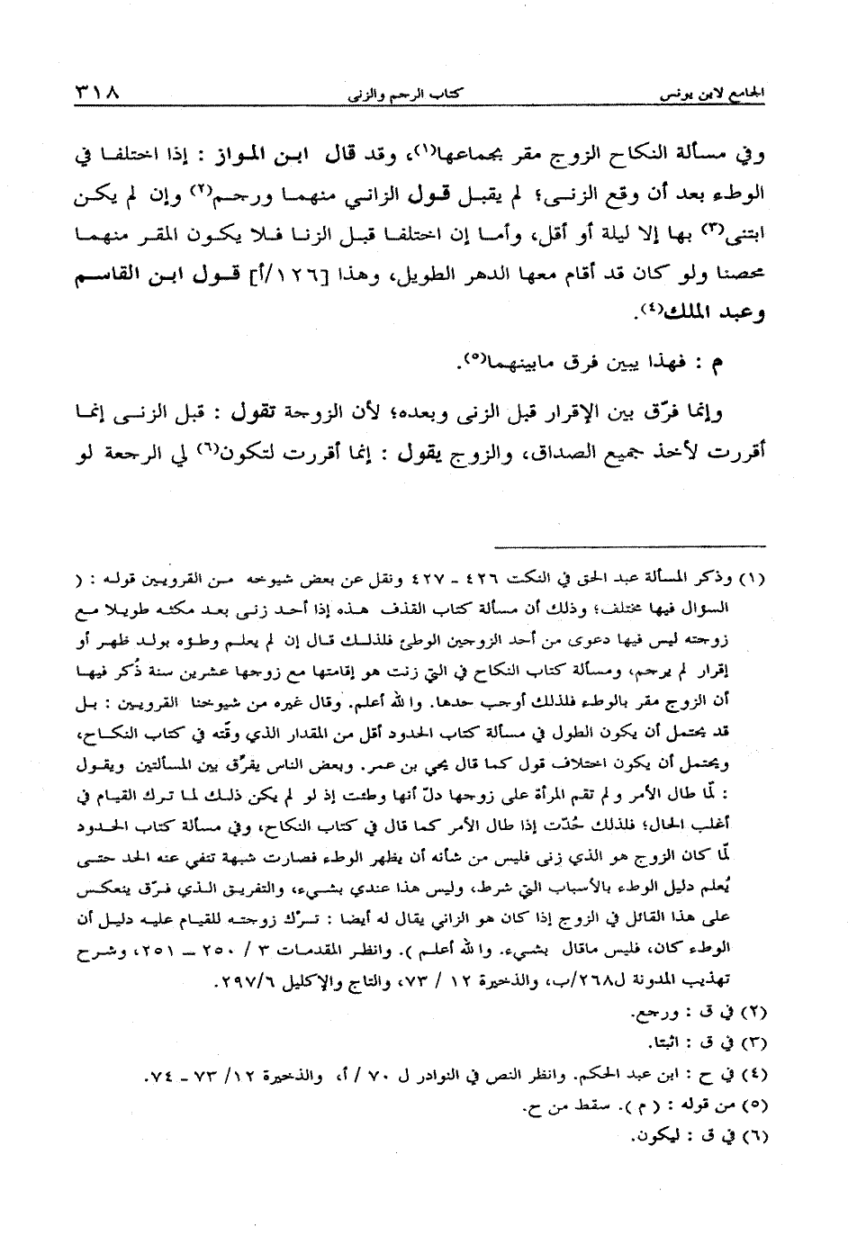 وفي مسألة النكاح الزوج مقر بجماعها، وقد قال ابن المواز: إذا اختلفا في الوطء بعد أن وقع الزنى؛ لم يقبل قول الزاني منهما ورجم وإن لم يكن ابتنى بها إلا ليلة أو أقل، وأما إن اختلفا قبل الزنا فلا يكون المقر منهما محصناً ولو كان قد أقام معها الدهر الطويل، وهذا قول ابن القاسم وعبد الملك.