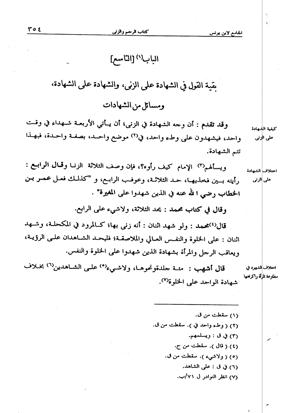 ومسائل من الشهادات