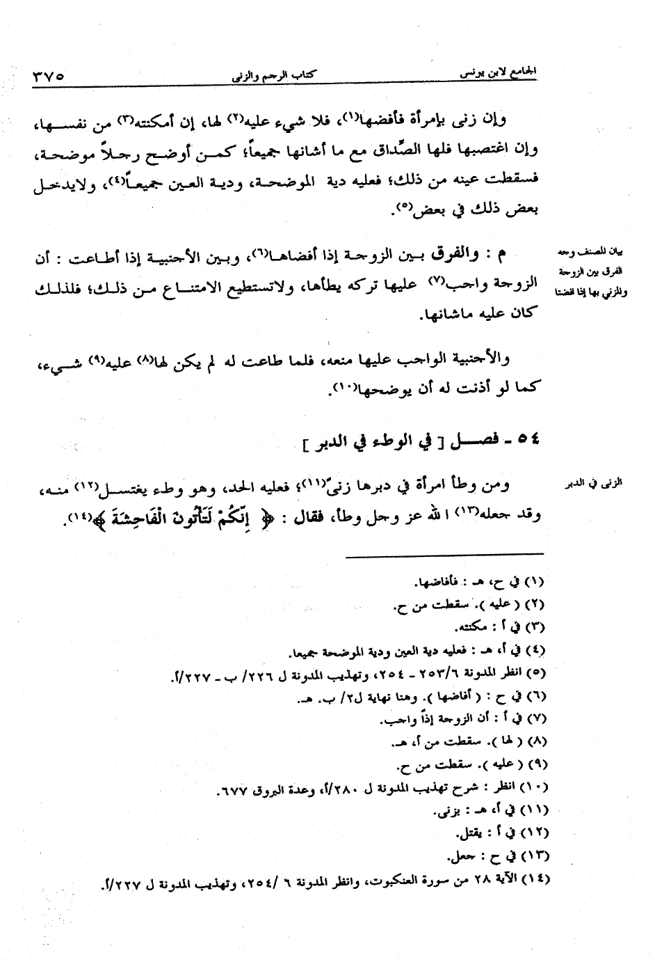 ومن وطأ امرأة في دبرها زنى؛ فعليه الحد، وهو وطء يغتسل منه، وقد جعله الله عز وجل وطأ، فقال: {إِنَّكُمْ لَتَاتُونَ الْفَاحِشَةَ}.