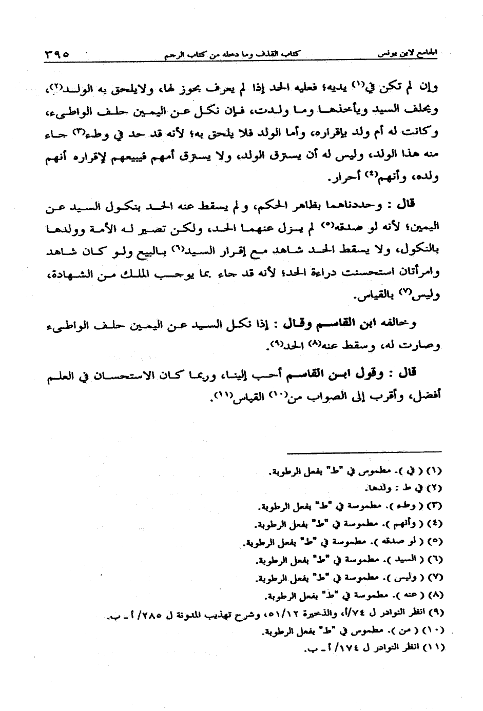 وخالفه ابن القاسم وقال: إذا نكل السيد عن اليمين حلف الواطئ وصارت له، وسقط عنه الحد.