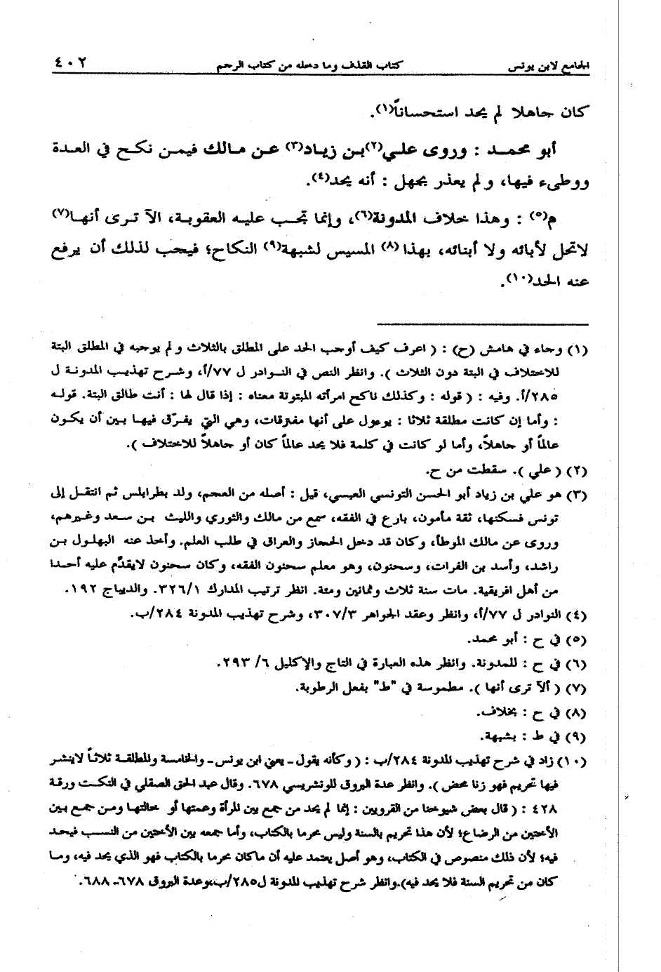 م: وهذا خلاف المدونة، وإنما تجب عليه العقوبة، ألا ترى أنها لا تحل لآبائه ولا أبنائه، بهذا المسيس لشبهة النكاح؛ فيجب لذلك أن يرفع عنه الحد.
