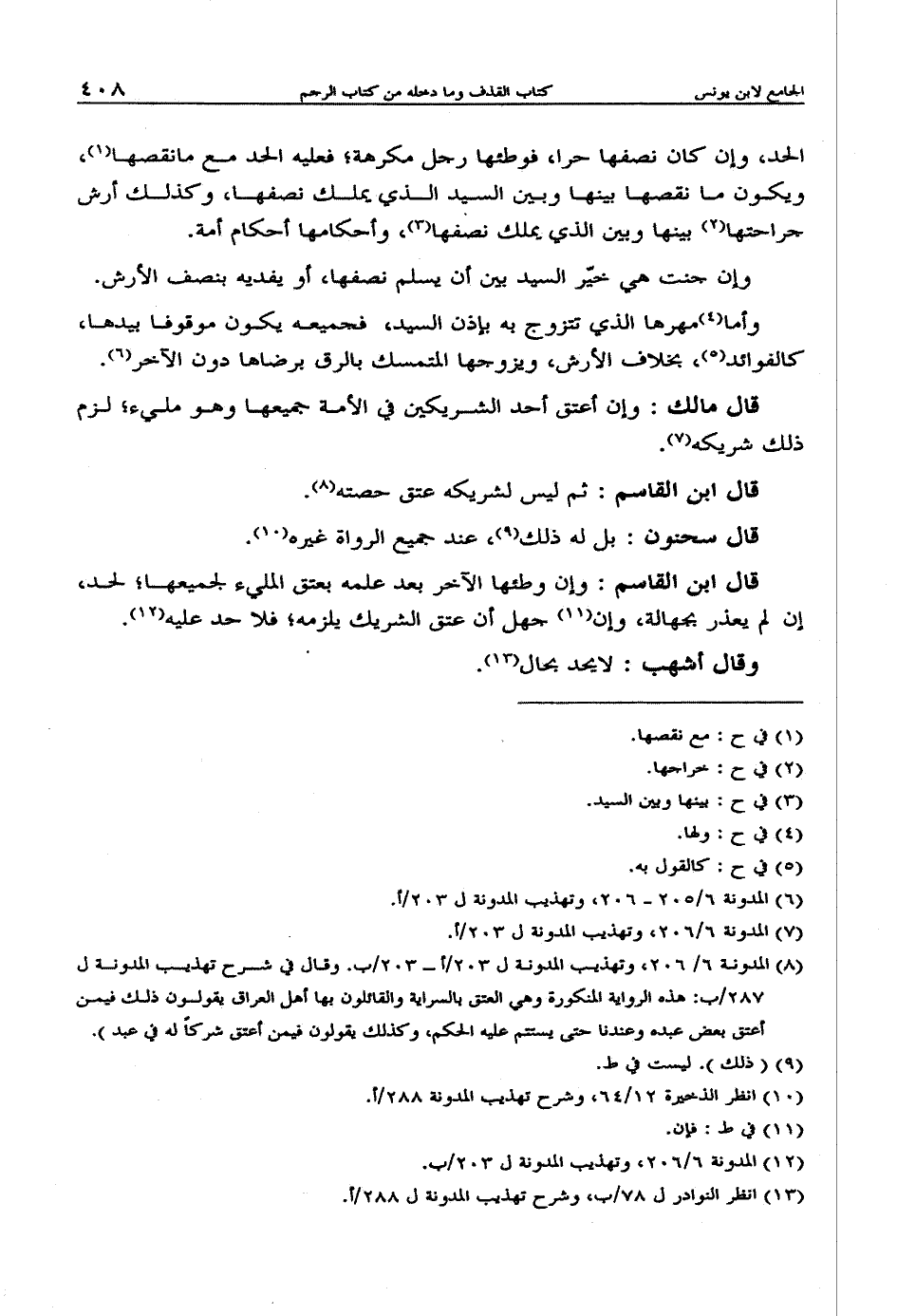الحد، وإن كان نصفها حرا، فوطئها رجل مكرهة؛ فعليه الحد مع نقصها، ويكون ما نقصها بينها وبين السيد الذي يملك نصفها، وكذلك أرش جراحتها بينها وبين الذي يملك نصفها، وأحكامها أحكام أمة.