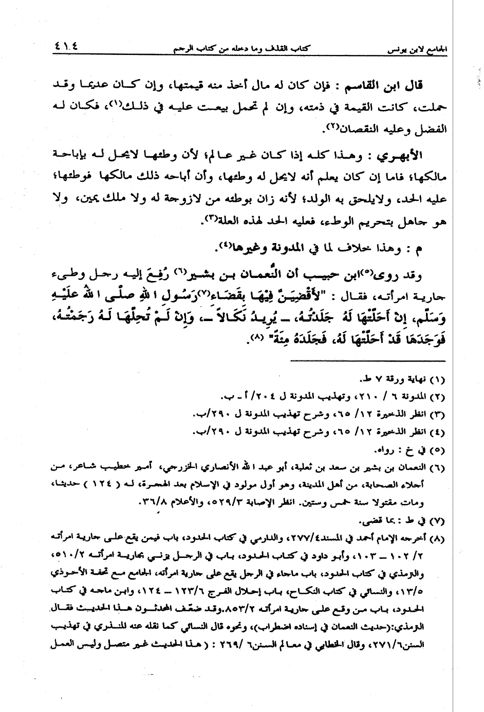 وقد روى ابن حبيب أن النعمان بن بشير رفع إليه رجل وطئ جارية امرأته، فقال: "لأقضين فيها بقضاء رسول الله صلى الله عليه وسلم، إن أحلتها له جلدته،- يريد نكالاً-، وإن لم تحلها له رجمته، فوجدها قد أحلتها له، فجلده مئة".