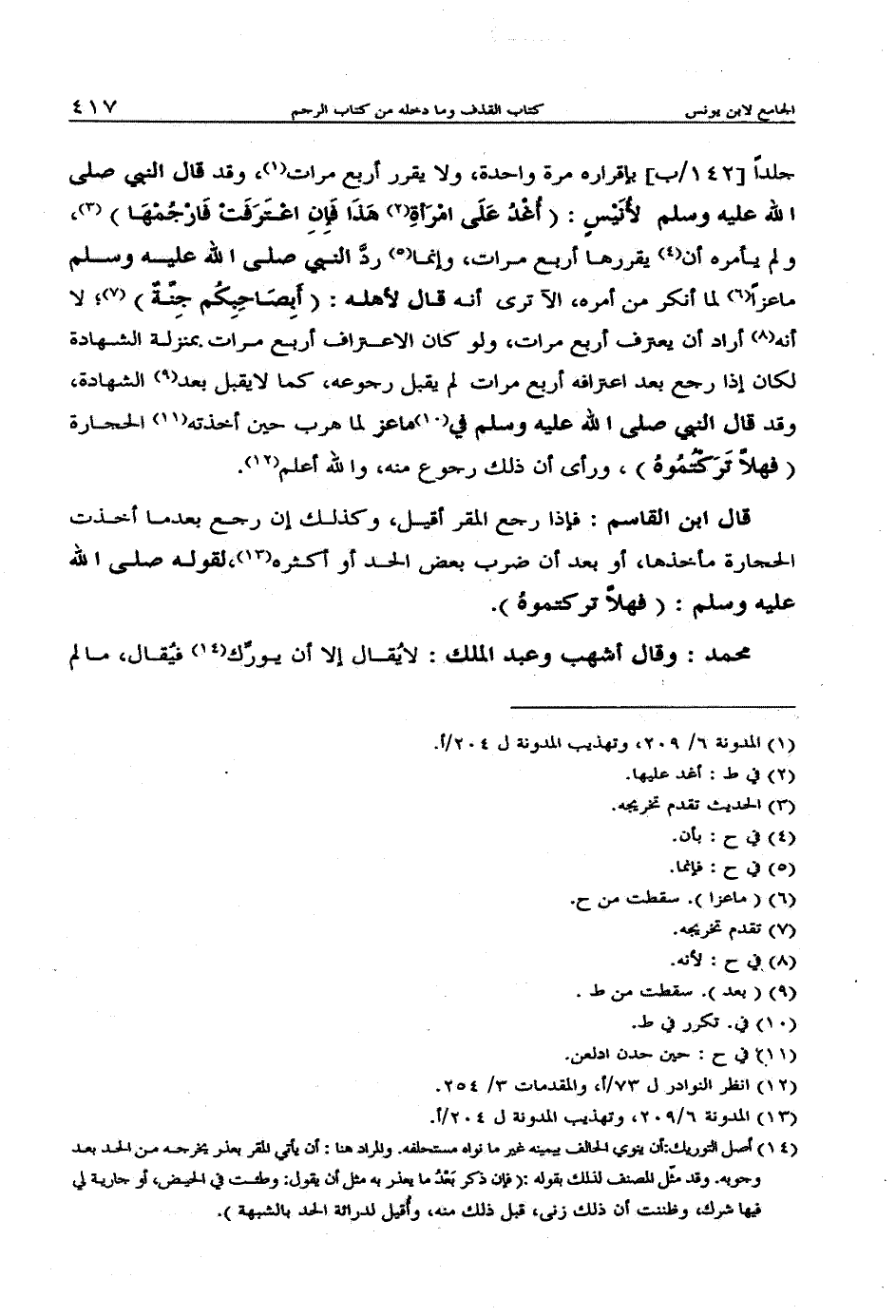 قال ابن القاسم: فإذا رجع المقر أقيل، وكذلك إن رجع بعدما أخذت الحجارة مأخذها، أو بعد أن ضرب بعض الحد أو أكثره، لقوله صلى الله عليه وسلم: (فهلا تركتموه).