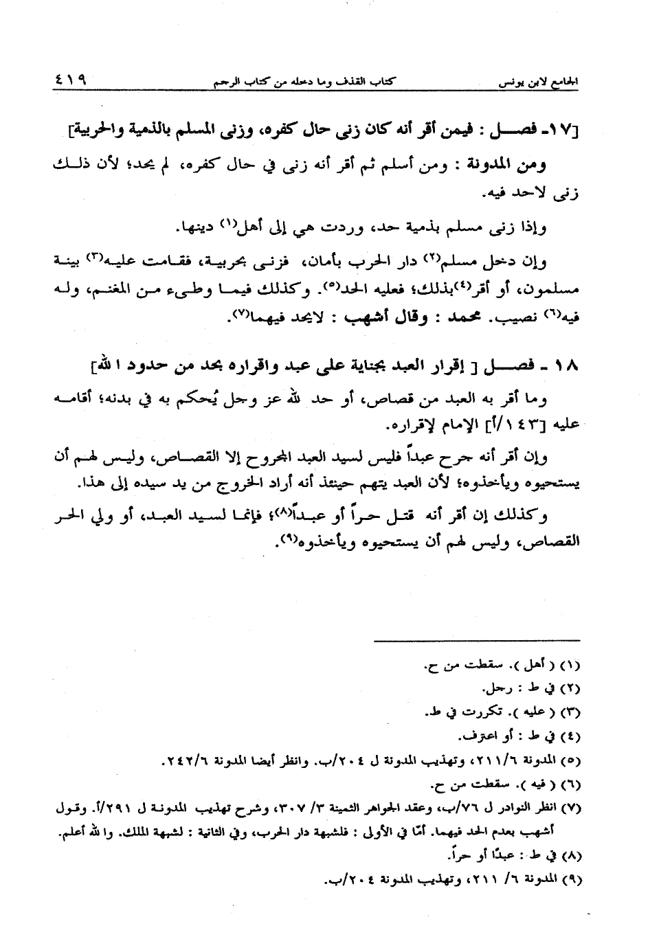 ومن المدونة: ومن أسلم ثم أقر أنه زنى في حال كفره، لم يحد؛ لأن ذلك زنى لا حد فيه.