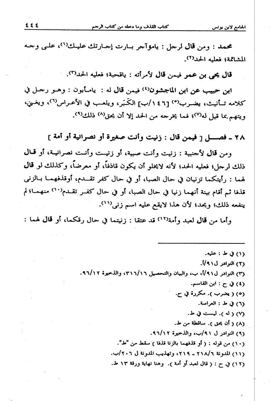 [28 - فصل: فيمن قال: زنيت وأنت صغيرة أو نصرانية أو أمة]