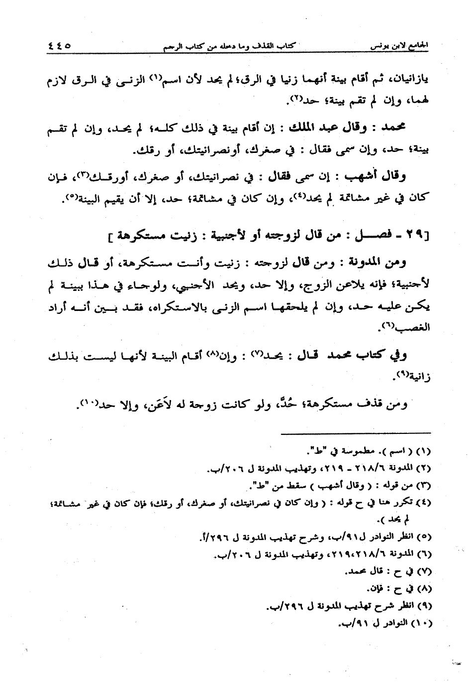 محمد: وقال عبد الملك: إن أقام بينة في ذلك كله؛ لم يحد، وإن لم تقم بينة؛ حد، وإن سمى فقال: في صغرك، أو نصرانيتك، أو رقك.