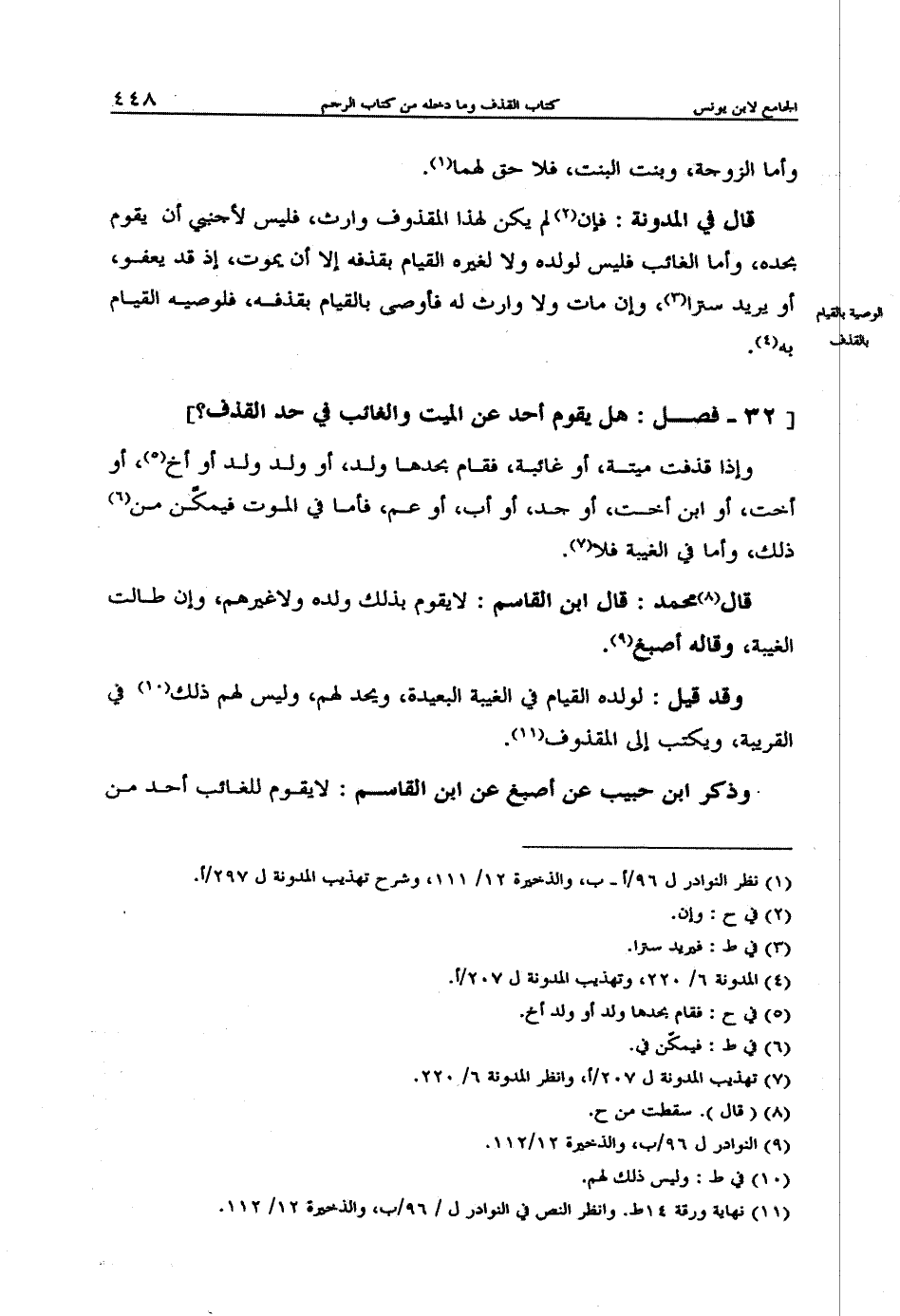 [32 - فصل: هل يقوم أحد عن الميت والغائب في حد القذف؟]