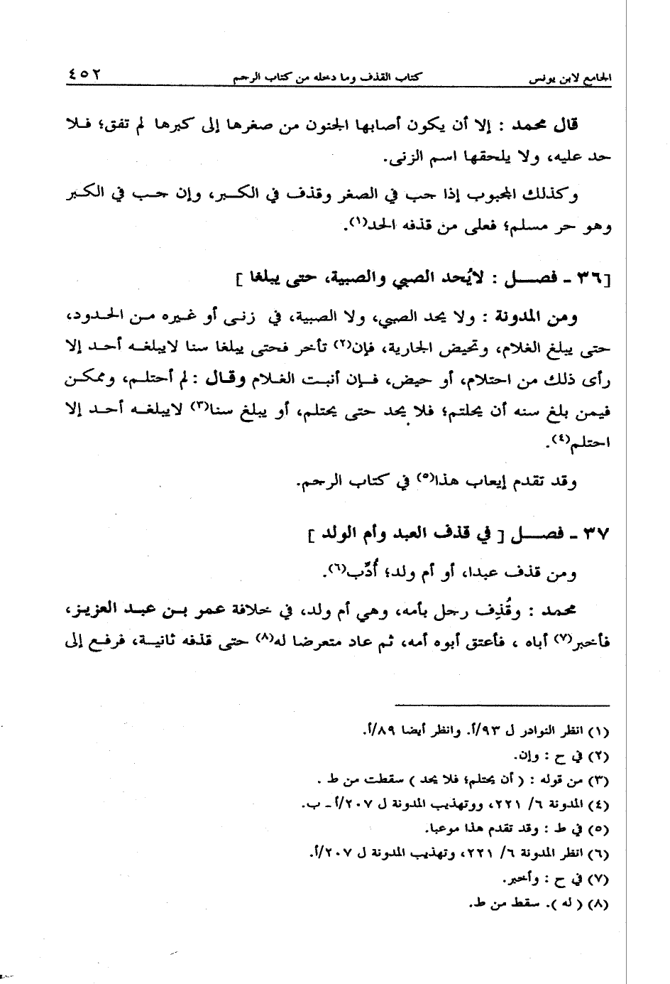 محمد: وقذف رجل بأمه، وهي أم ولد، في خلافة عمر بن عبد العزيز، فأخبر أباه، فأعتق أبو أمه، ثم عاد متعرضا له حتى قذفه ثانية، فرفع إلى
