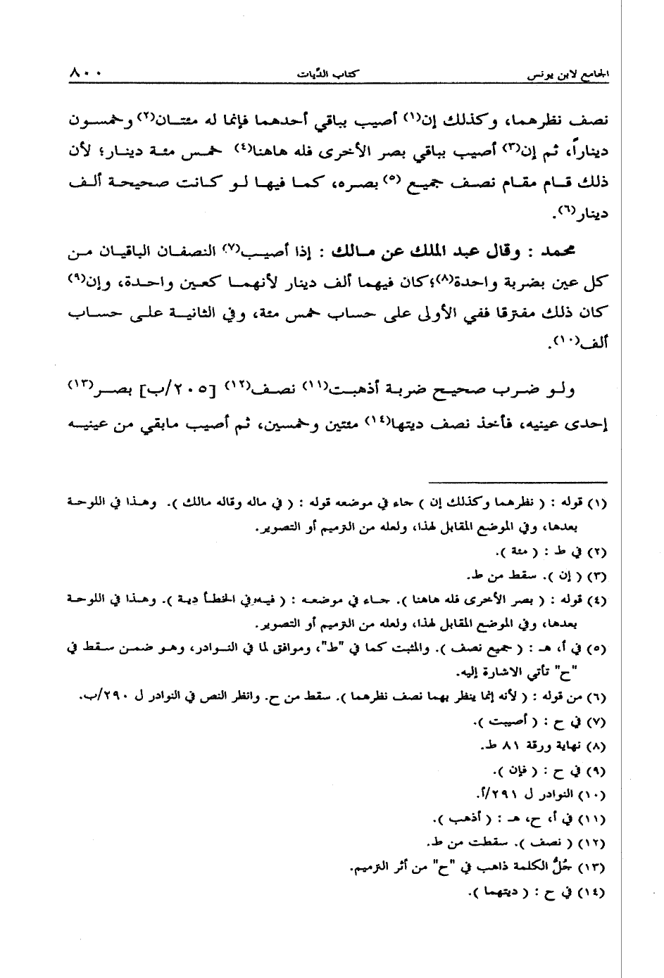 محمد: وقال عبد الملك عن مالك: إذا أصيب النصفان الباقيان من كل عين بضربة واحدة؛ كان فيهما ألف دينار لأنهما كعين واحدة، وإن كان ذلك مفترقا ففي الأولى على حساب خمس مئة، وفي الثانية على حساب ألف.
