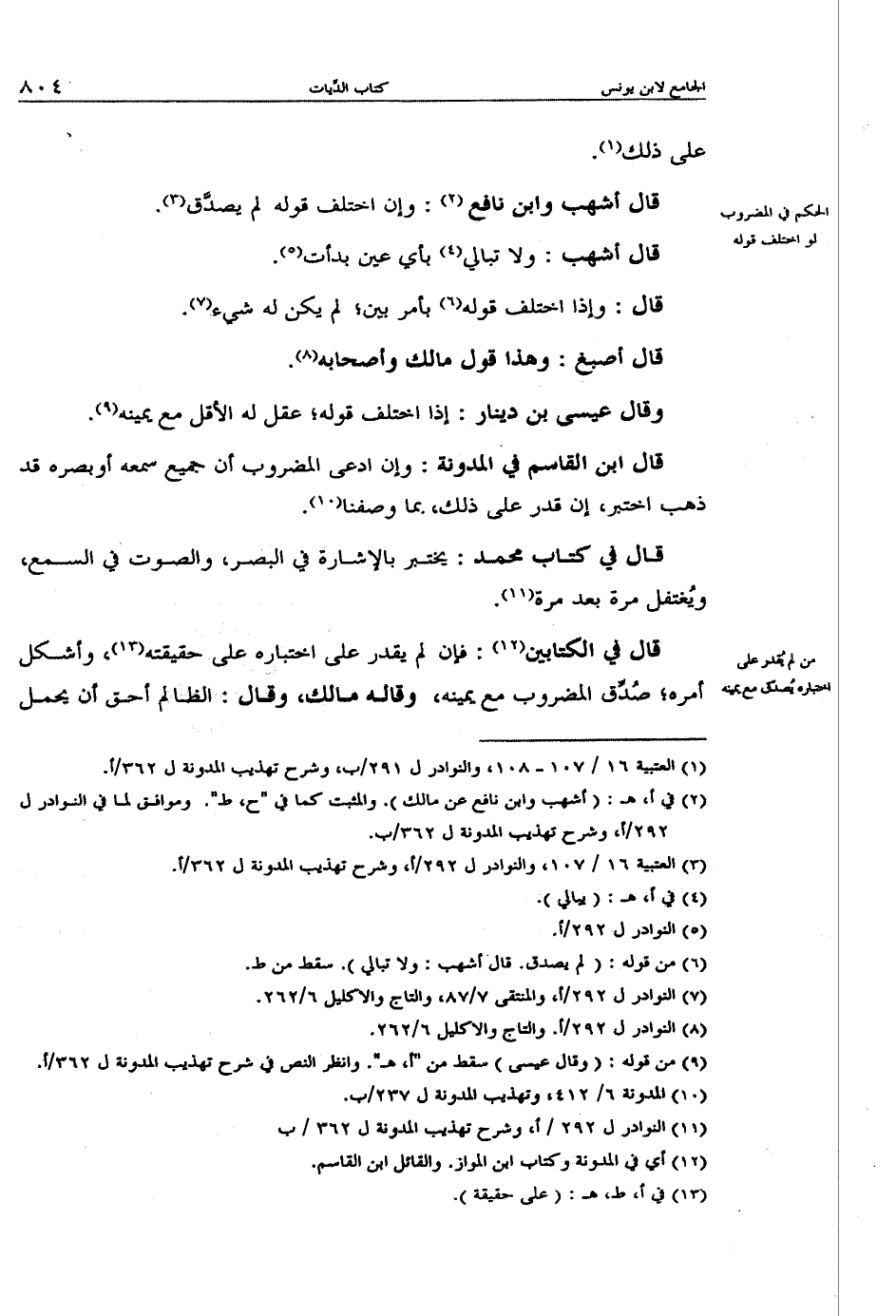 قال أشهب وابن نافع: وإن اختلف قوله ل يصدق.