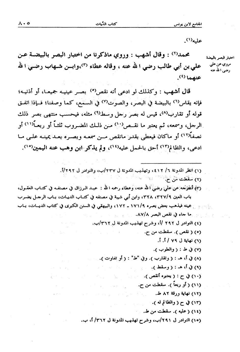 محمد: وقال أشهب: وروى ما ذكرنا من اختبار البصر بالبيضة عن علي بن أبي طالب رضي الله عنه، وقاله عطاء، وابن شهاب رضي الله عنهما.