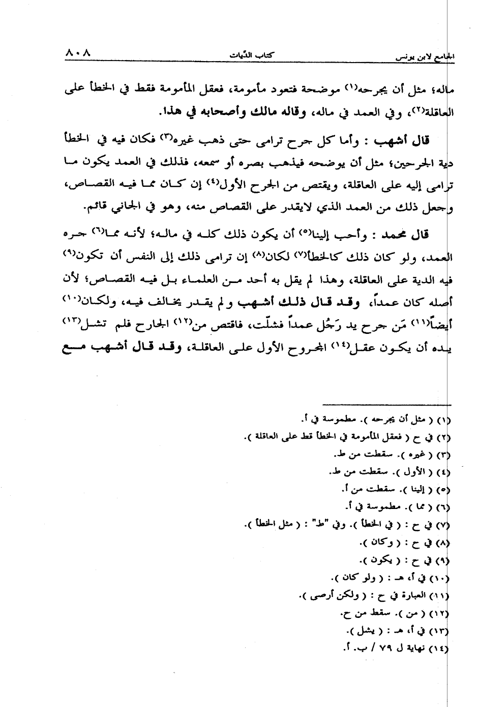 قال محمد: وأحب إلينا أن يكون ذلك كله في ماله؛ لأنه مما جره العمد، لو كان ذلك كالخطأ لكان إن ترامى ذلك إلى النفس أن يكون فيه الدية على العاقلة، وهذا لم يقل به أحد من العلماء بل فيه القصاص؛ لأن أصله كان عمداً، قد قال ذلك أشهب ولم يقدر يخالف فيه، ولكان أيضا من جرح يد رجل عمداً فشلت، فاقتص من الجارح فلم تشل يده أن يكون عقل المجروح الأول على العاقلة، وقد قال أشهب مع