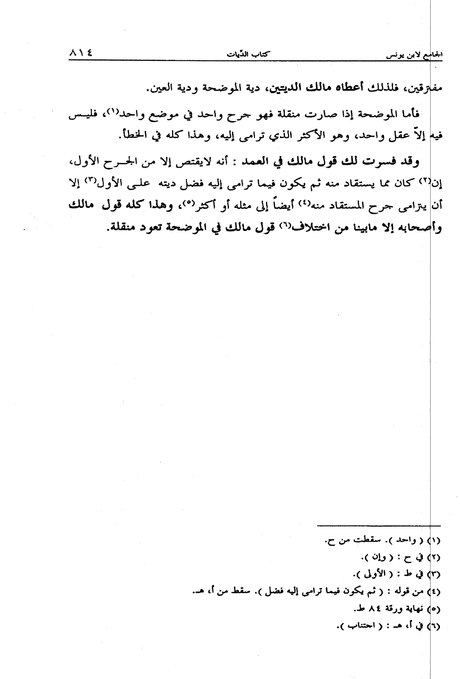 مفترقين، فلذلك أعطاه مالك الديتين، دية الموضحة ودية العين.
