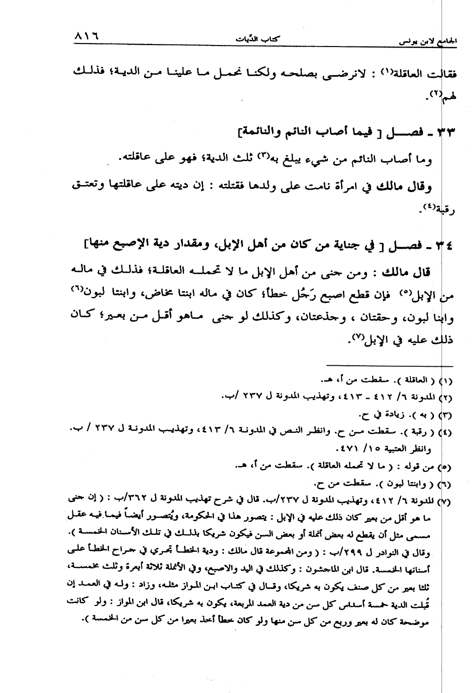 وما أصاب النائم من شيء يبلغ به ثلث الدية؛ فهو على عاقلته.