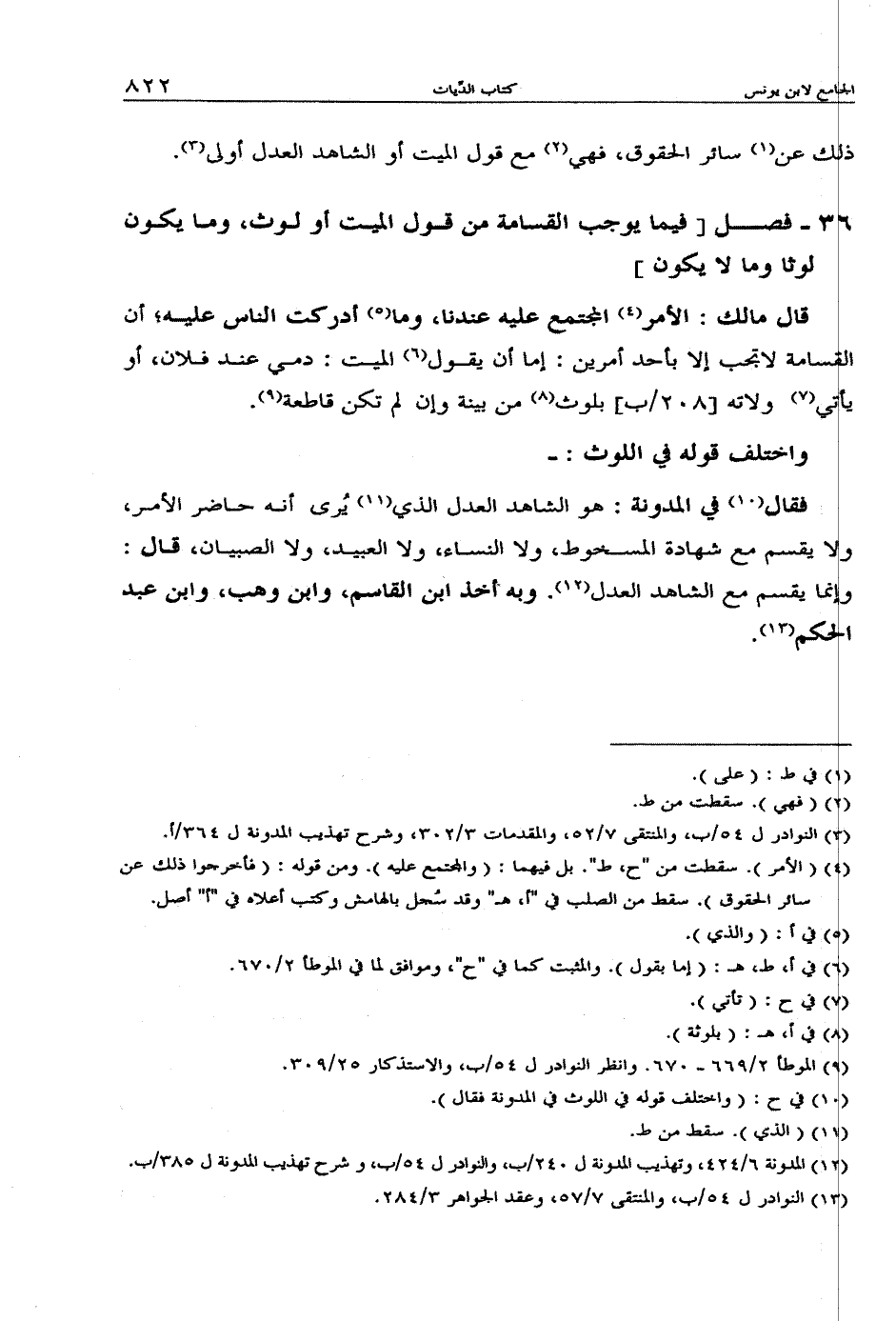 قال مالك: الأمر المجتمع عليه عندنا، وما أدركت الناس عليه؛ أن القسامة لا تجب إلا بأحد أمرين: إما أن يقول الميت: دمي عند فلان، أو يأتي ولاته [208/ب] من بينة وإن لم تكن قاطعة.