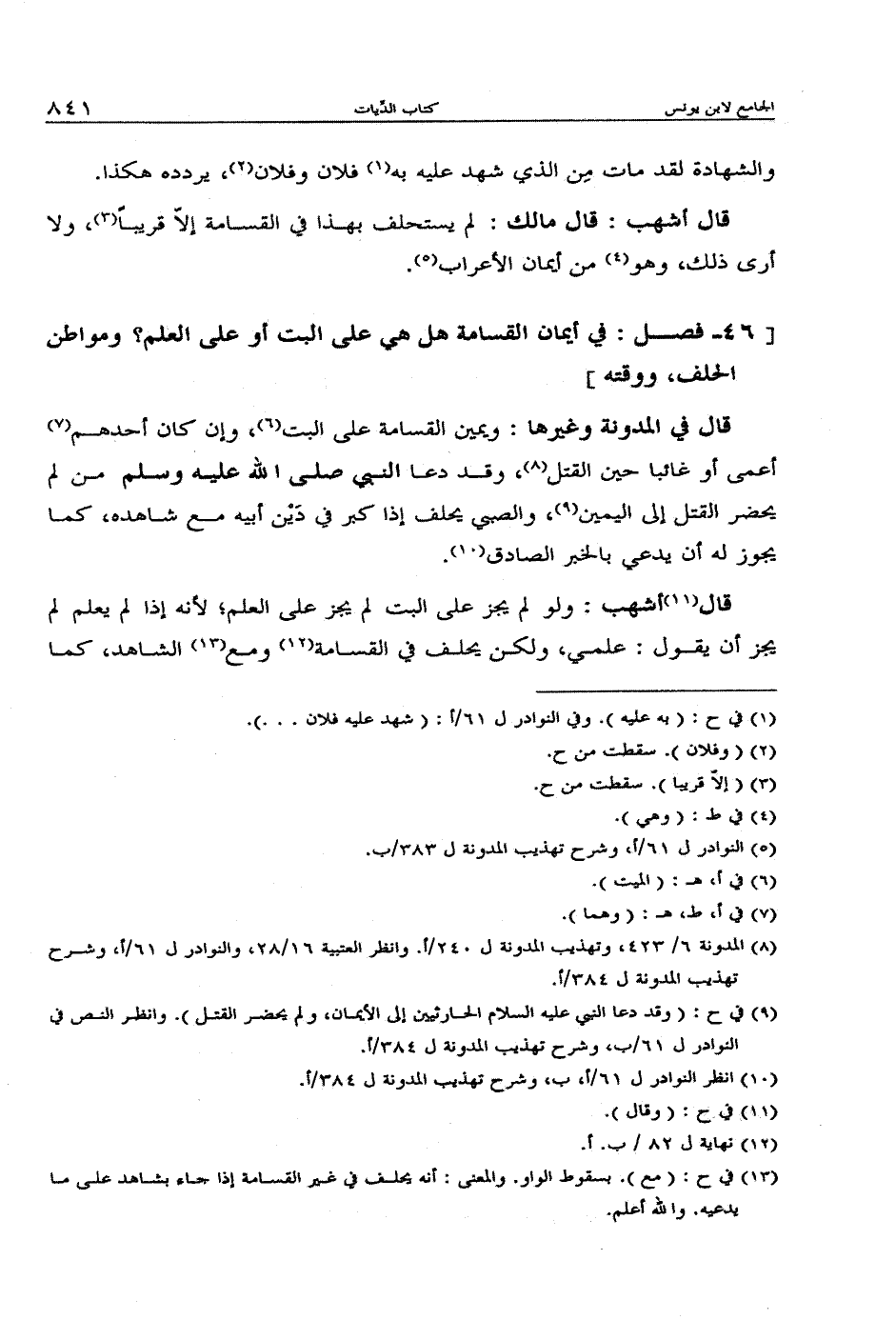 قال أشهب: قال مالك: لم يستحلف بهذا في القسامة إلا قريبا، ولا أرى ذلك، وهو من أيمان الأعراب.