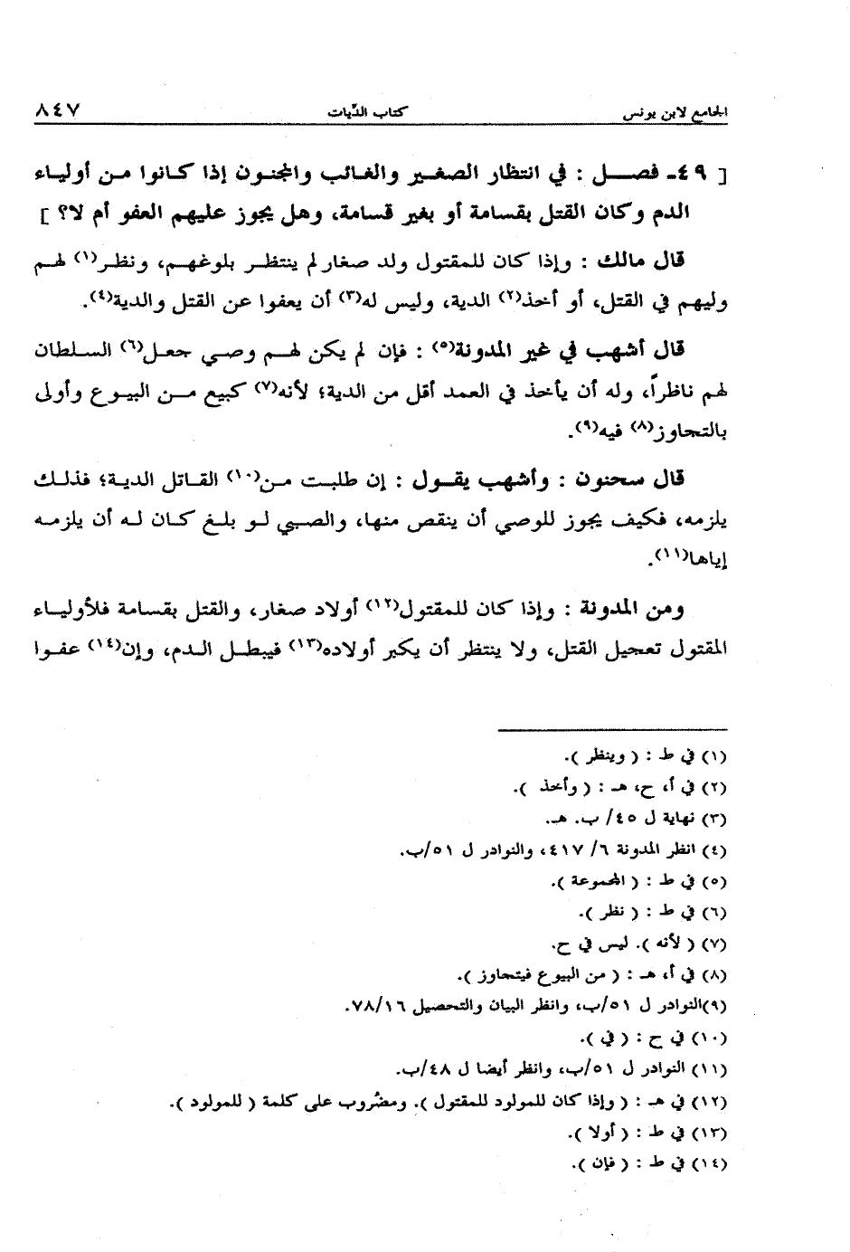 قال سحنون وأشهب يقول: إن طلبت من القاتل الدية؛ فذلك يلزمه، فكيف يجوز للوصي أن ينقص منها، والصبي لو بلغ كان له أن يلزمه إياها.
