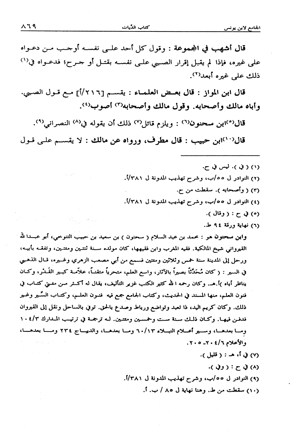 قال ابن سحنون: ويلزم قائل ذلك أن يقوله في النصراني.