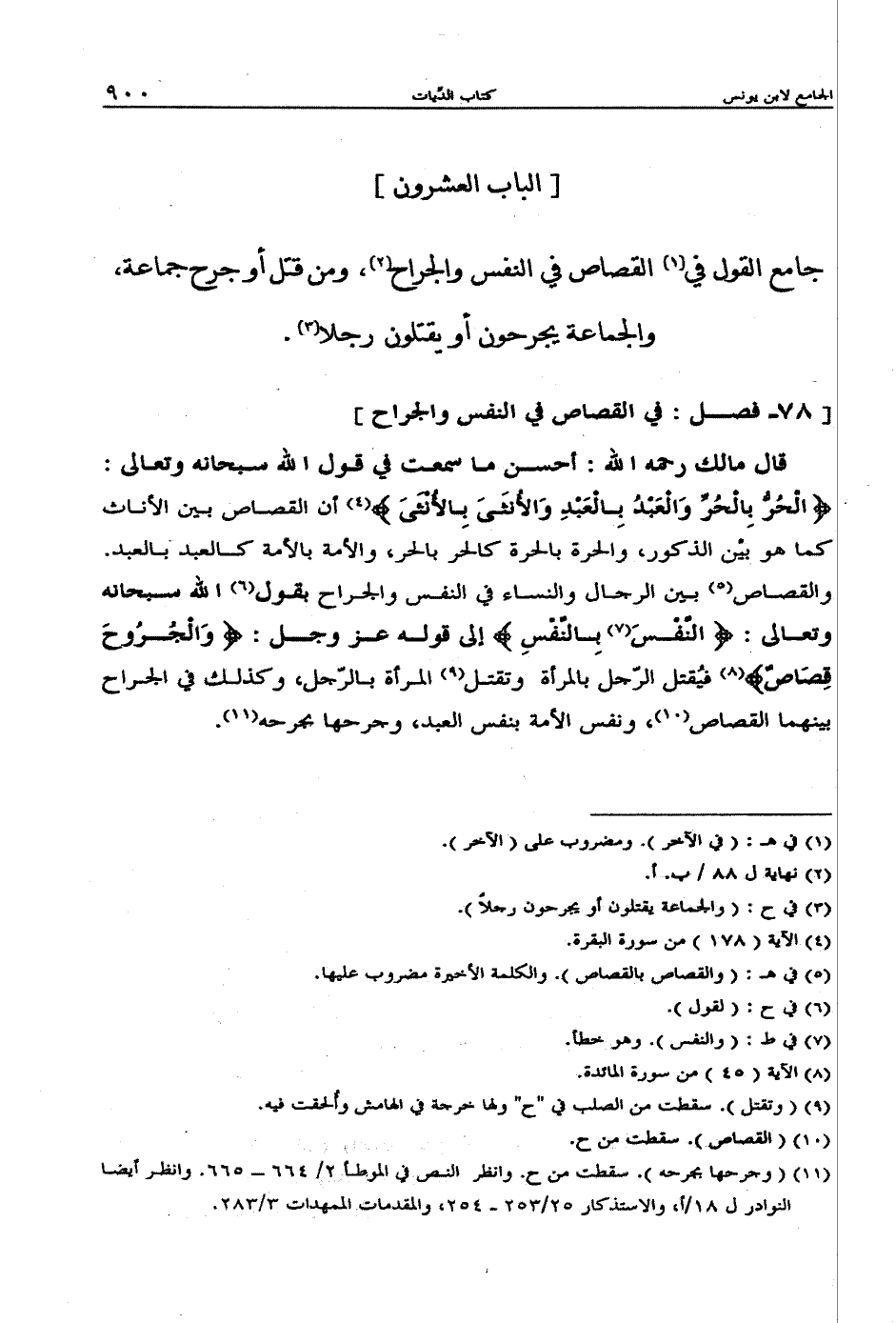 جامع القول في القصاص في النفس والجراح ومن قتل أو جرح جماعة،