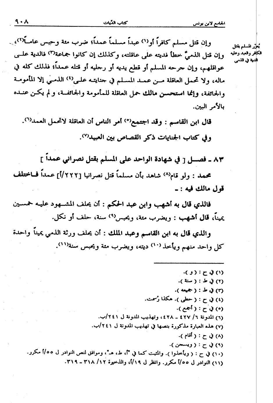 ماله, ولا تحمل العاقلة من عمد المسلم في جنايته على الذمي وإلا المأمومة