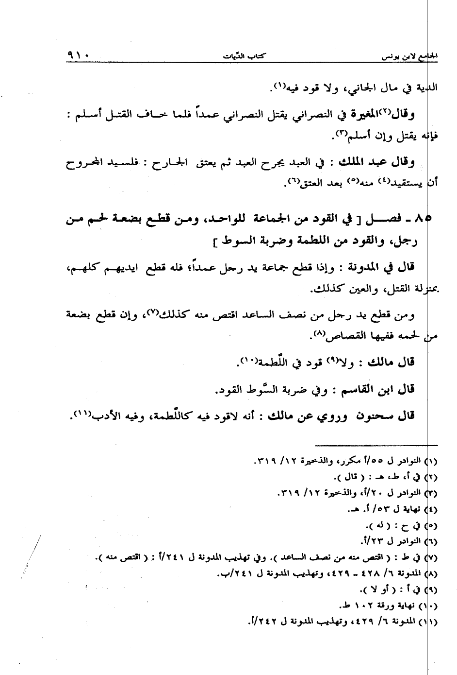 85 - فصل [في القود من الجماعة للواحد, ومن قطع بضعة لحم من