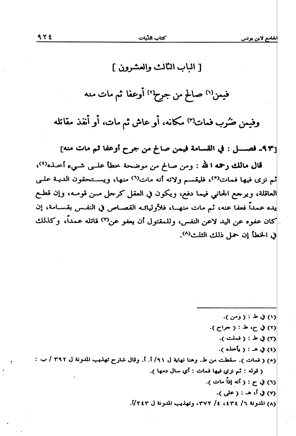 وفيمن ضُرب فمات مكانه, أو عاش ثم مات, أو أنفذ مقاتله